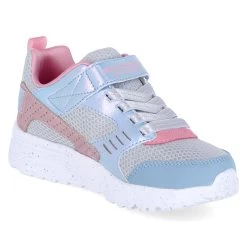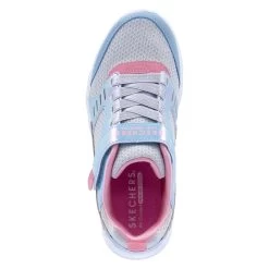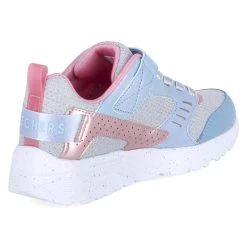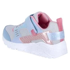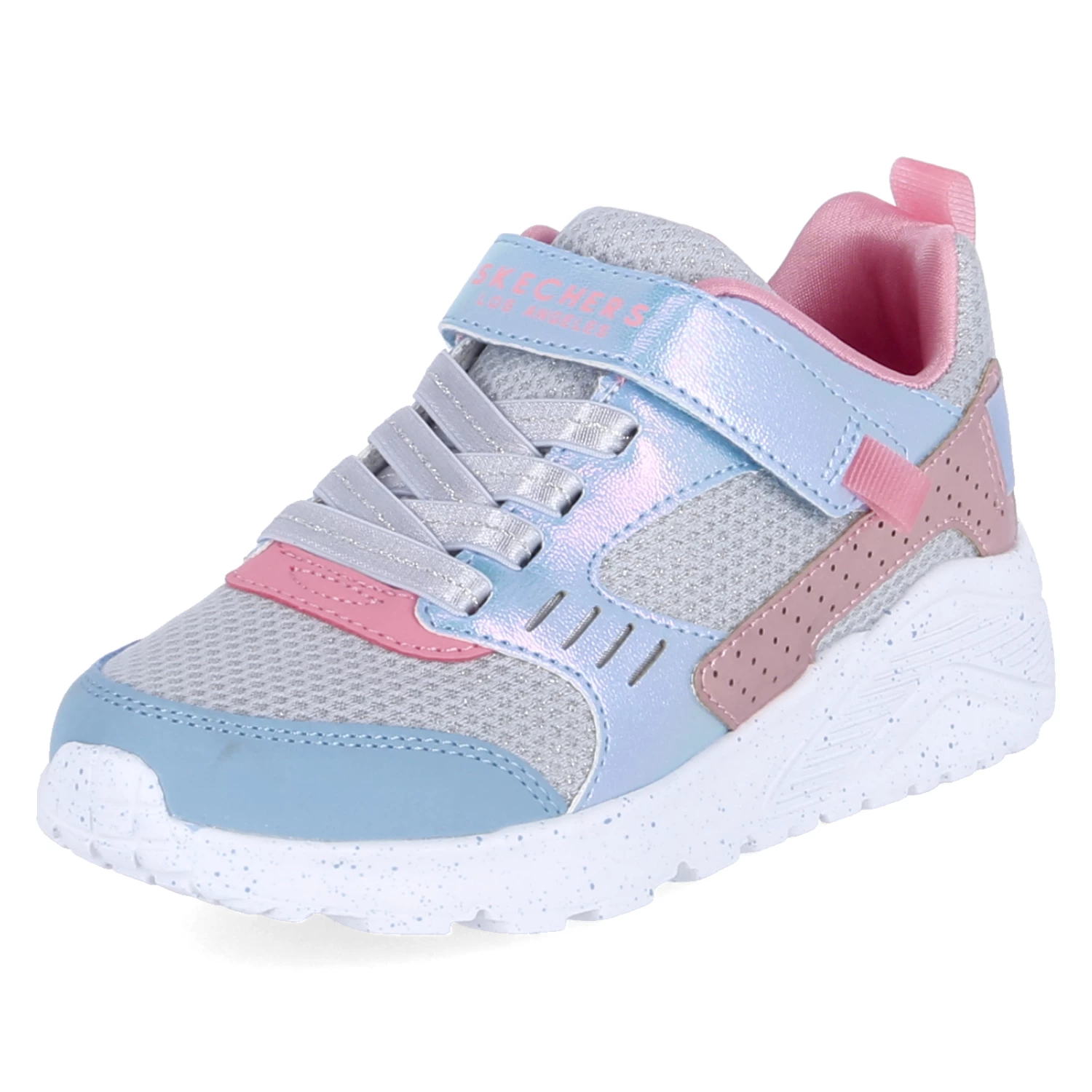 Skechers Mädchen Low Sneaker Uno Lite – GEN CHILL Blau-Grau Textil-Synthetik-Mix – geringes Gewicht – metallischer Glanz und Glitzer – Klettverschluss und Elastikband – Air-Cooled Memory Foam FuĂźbett – weiĂźe, flexible, rutschhemmende Laufsohle – waschbar
