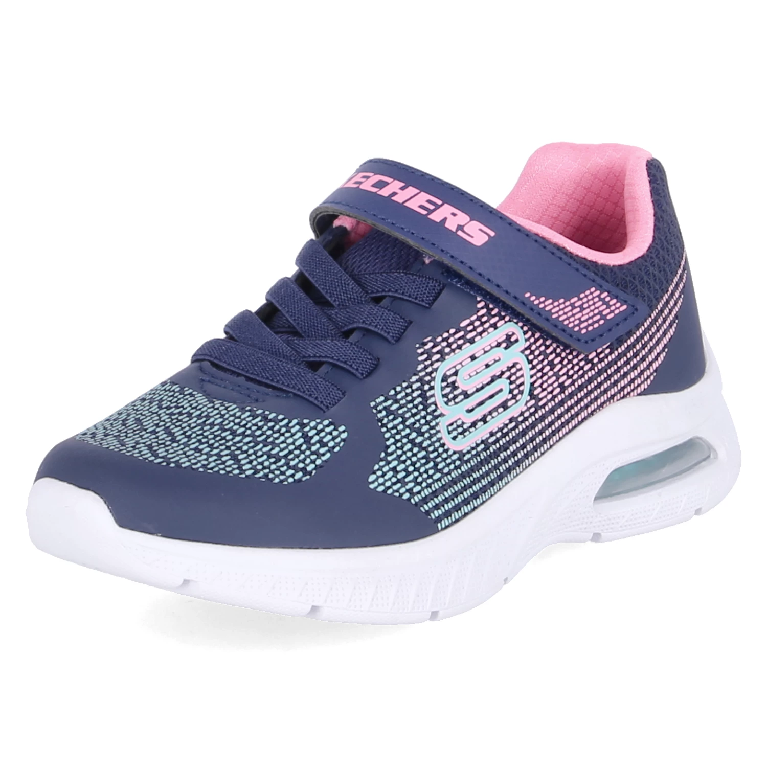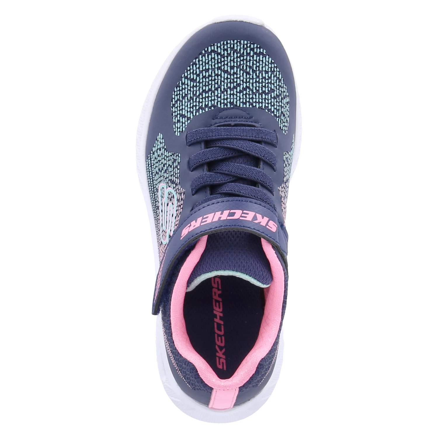 Skechers Mädchen Sportschuhe/ Hallenschuhe/ Low Sneaker OMBRE DAYS Blau Synthetik – Klettriemen und Elastikband in SchnĂĽroptik ĂĽber dem Spann – dezente Markendetails – verstärkter Zehen- und Fersenbereich – gepolsterter Einstieg – gepolstertes FuĂźbett – flexible, rutschhemmende Laufsohle (non marking)
