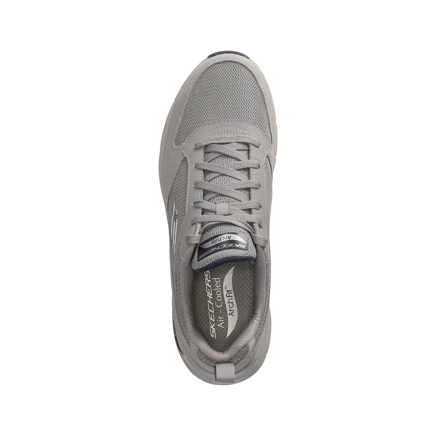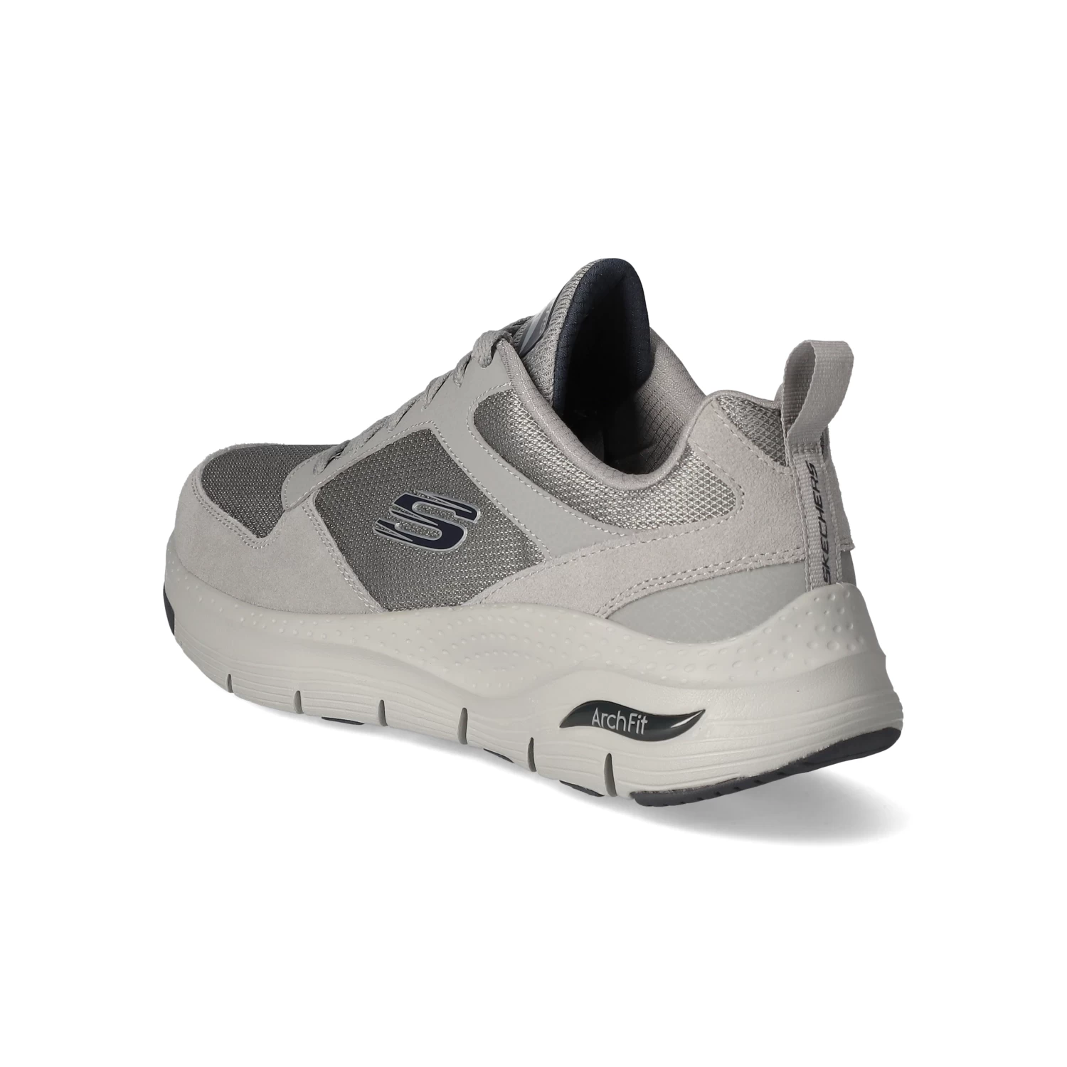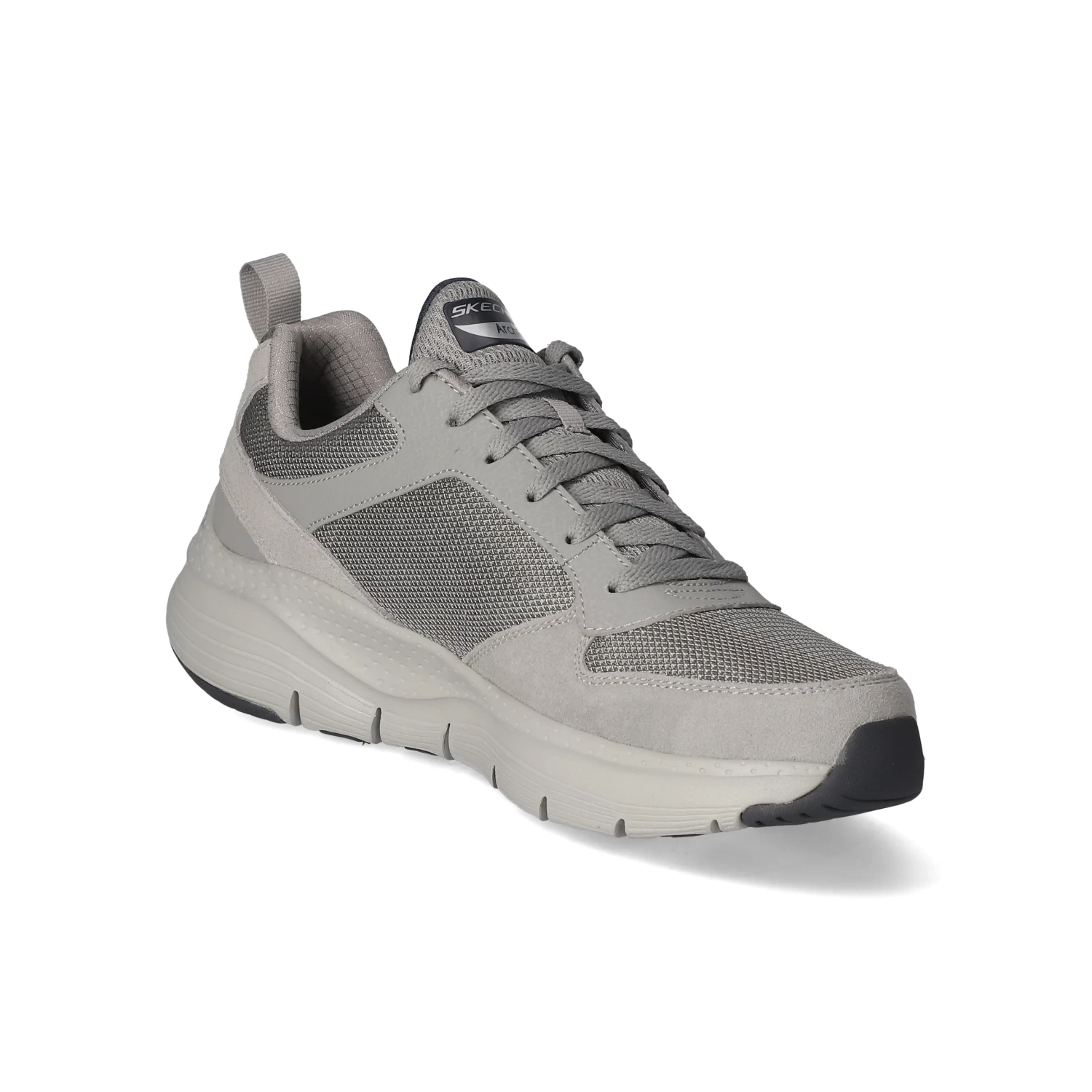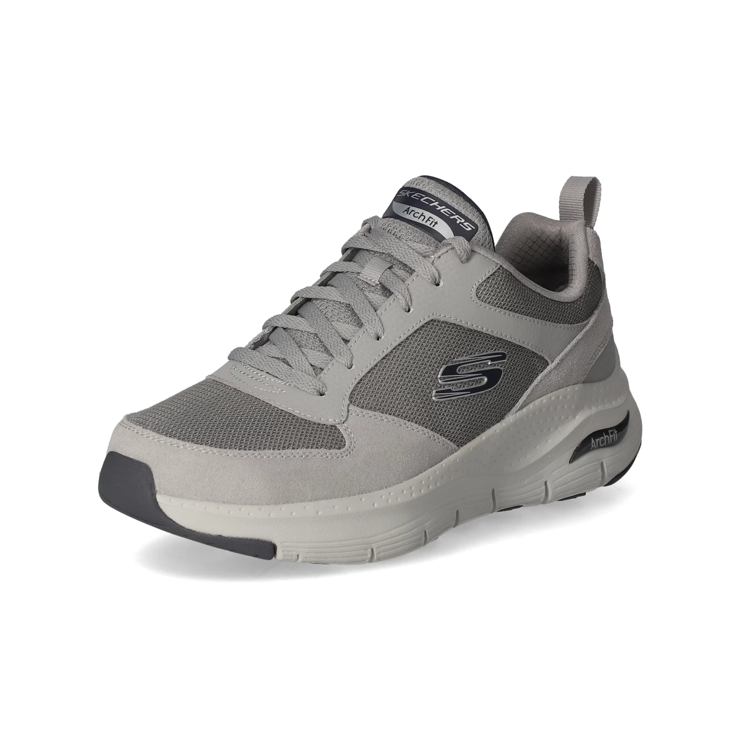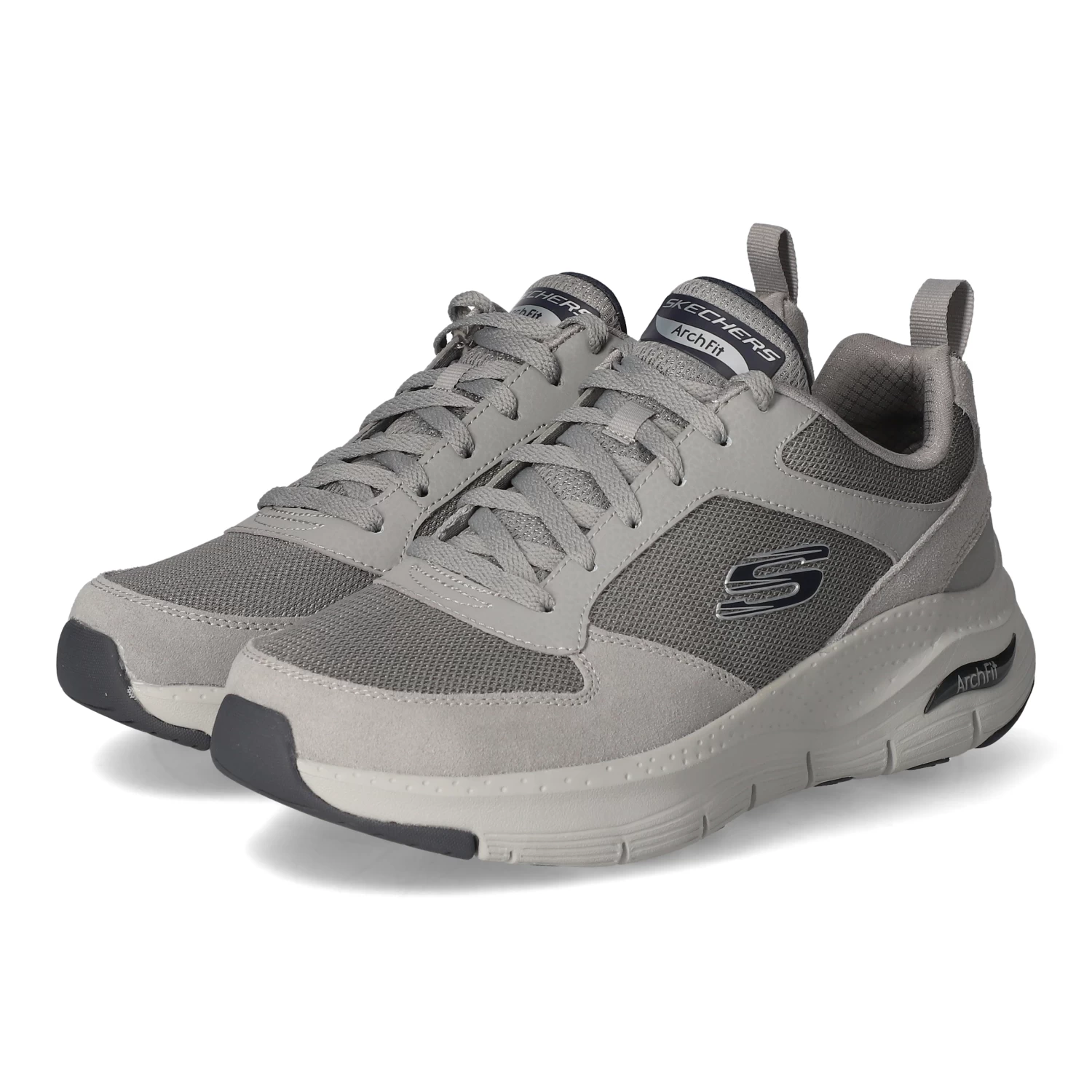 Skechers Herren Low Sneaker/ Sportschuhe SERVITICA Grau Leder-Textil-Mix – sportliche Zierstreifen – typische Markendetails – SchnĂĽrung – verstärkter Zehen- und Fersenbereich – Anziehlasche – gepolsterter Einstieg – leichtes Textilfutter – gepolsterte Wechseldecksohle – flexible, rutschhemmende Profilsohle