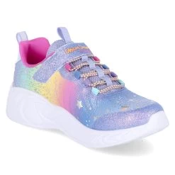 Skechers S-Lights Mädchen Klettschuhe/ Low Sneaker RAINBOW RACER Mehrfarbig Textil-Synthetik-Mix – glitzernde und schimmernde Details – Klettverschluss – Elastikbänder mit SchnĂĽroptik – Markendetails – verstärkter Zehen- und Fersenbereich – zwei Anziehlaschen – flexible, rutschhemmende non marking Laufsohle – LED`s (schaltbar) im Klettveschluss