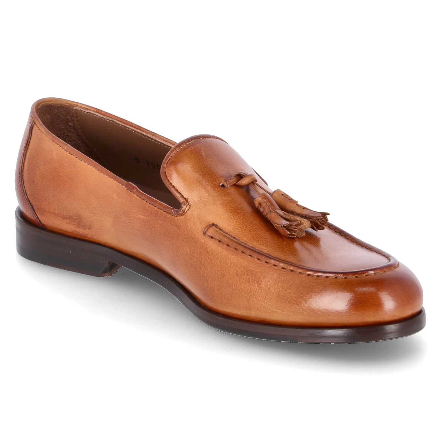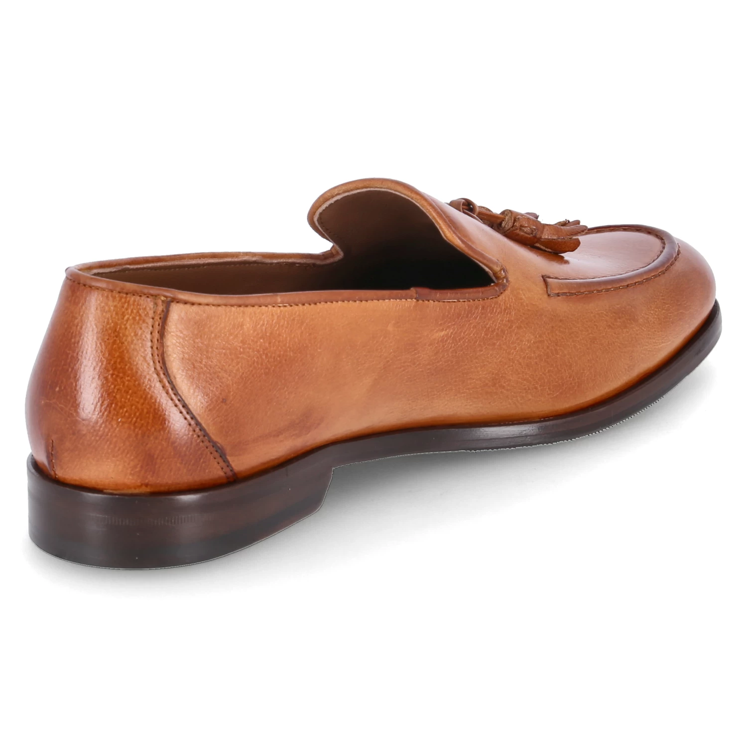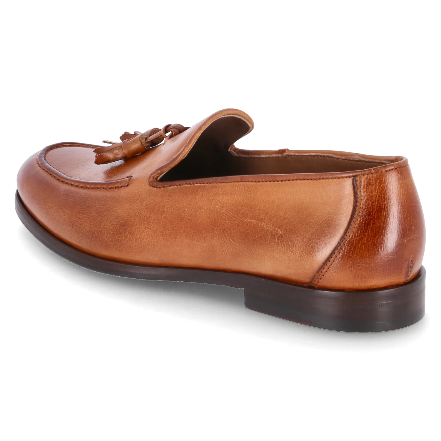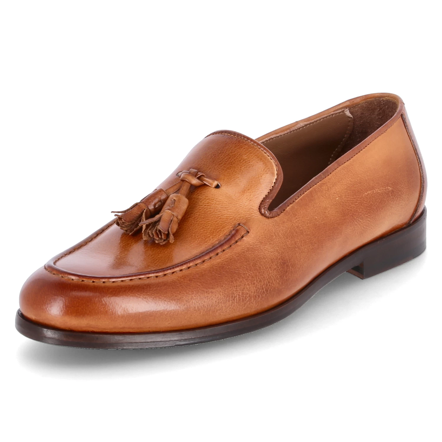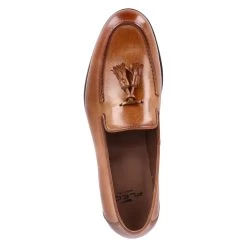 Flecs Herren Loafer/ Slipper Braun Glattleder – Ziernähte – verstärkte Ferse – Zierquasten über dem Spann – Lederfußbett mit gepolsterter Ferse – flexible Lederlaufsohle mit rutschhemmenden Elementen