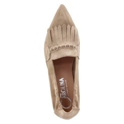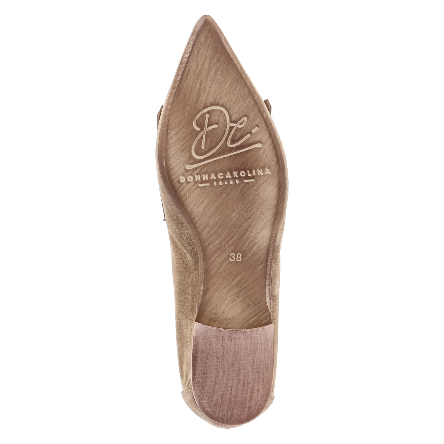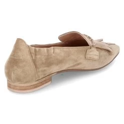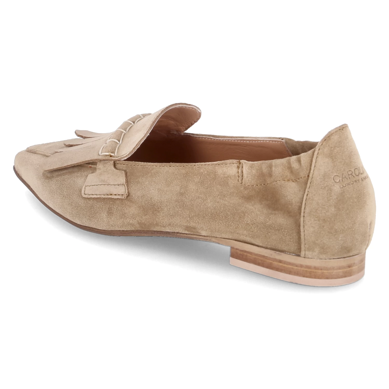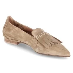 Donna Carolina Damen Slipper ALIX Beige Rauleder – Riemchen mit Fransen auf dem Spann – elastischer Einstieg – leicht gepolsterte Lederdecksohle – Lederfutter – flexible, rutschhemmende Laufsohle