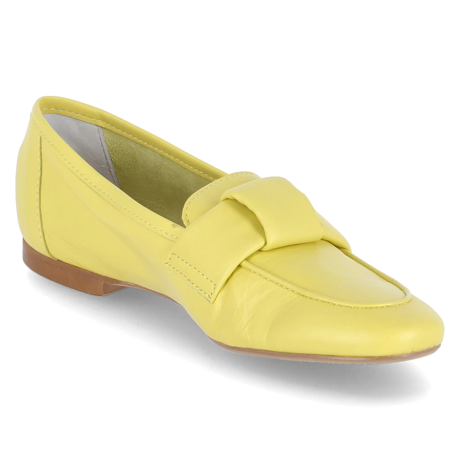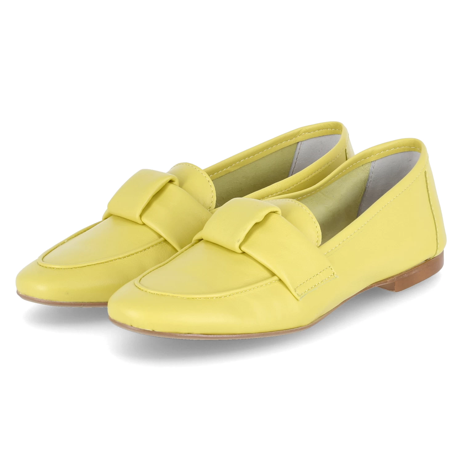 Kaerleg Damen Slipper/ Loafer VISMIO Gelb Glattleder – geringes Gewicht – klassischer Zierriemen mit Knotendetail – verstärkte Ferse – gepolsterte Lederdecksohle – flexible Laufsohle
