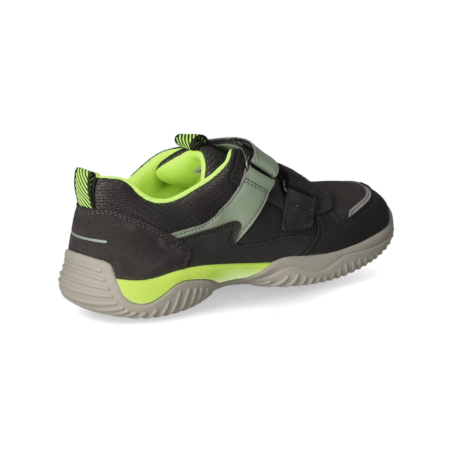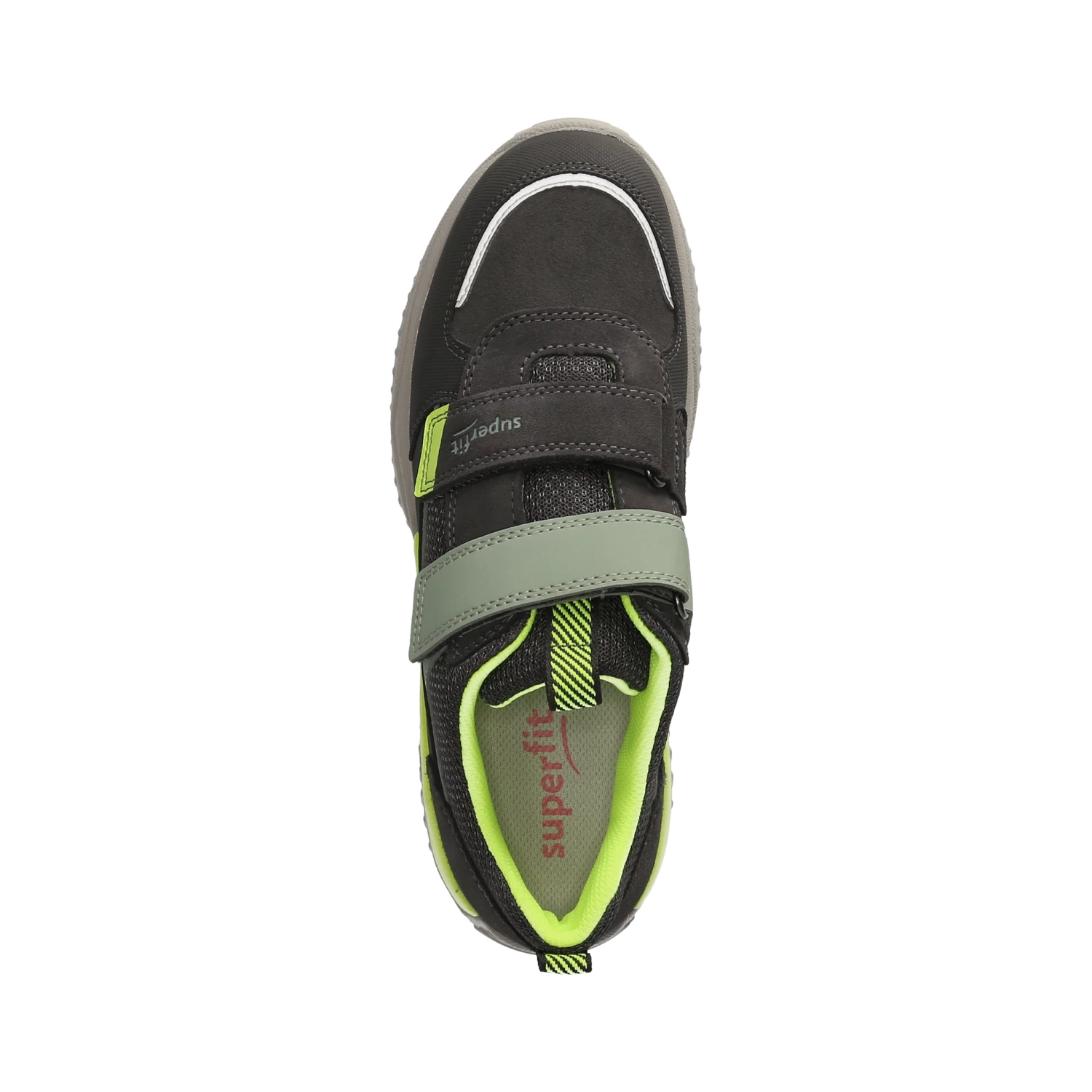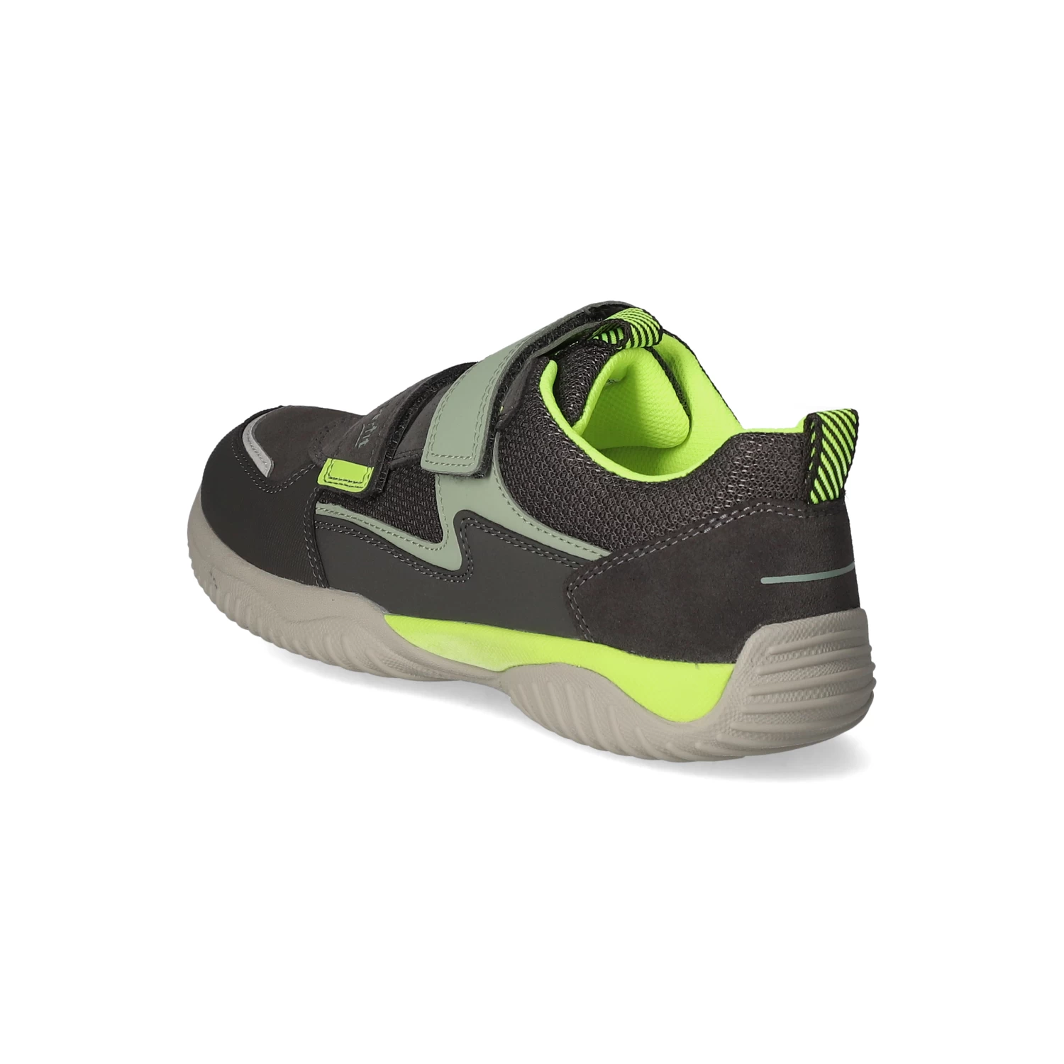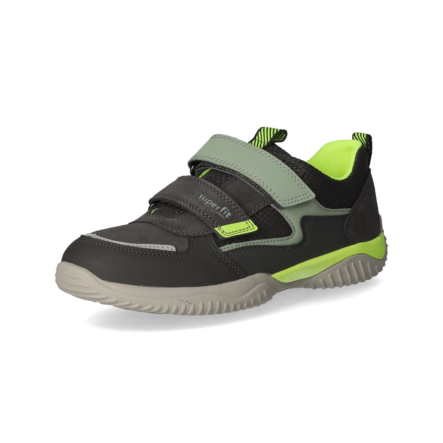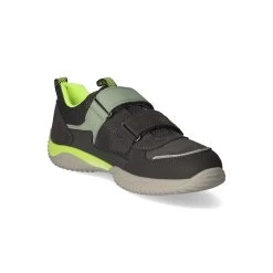 Superfit Jungen Halbschuhe/ Klettschuhe Grau Leder-Synthetik-Textil-Mix – sportliches Design – gelbe und grĂĽne Highlights – reflektierende Elemente – Klettverschluss – verstärkter Zehen- und Fersenbereich – gepolsterter Einstieg – Anziehlasche – leichtes Textilfutter – herausnehmbare Decksohle – flexible, rutschhemmende Profilsohle