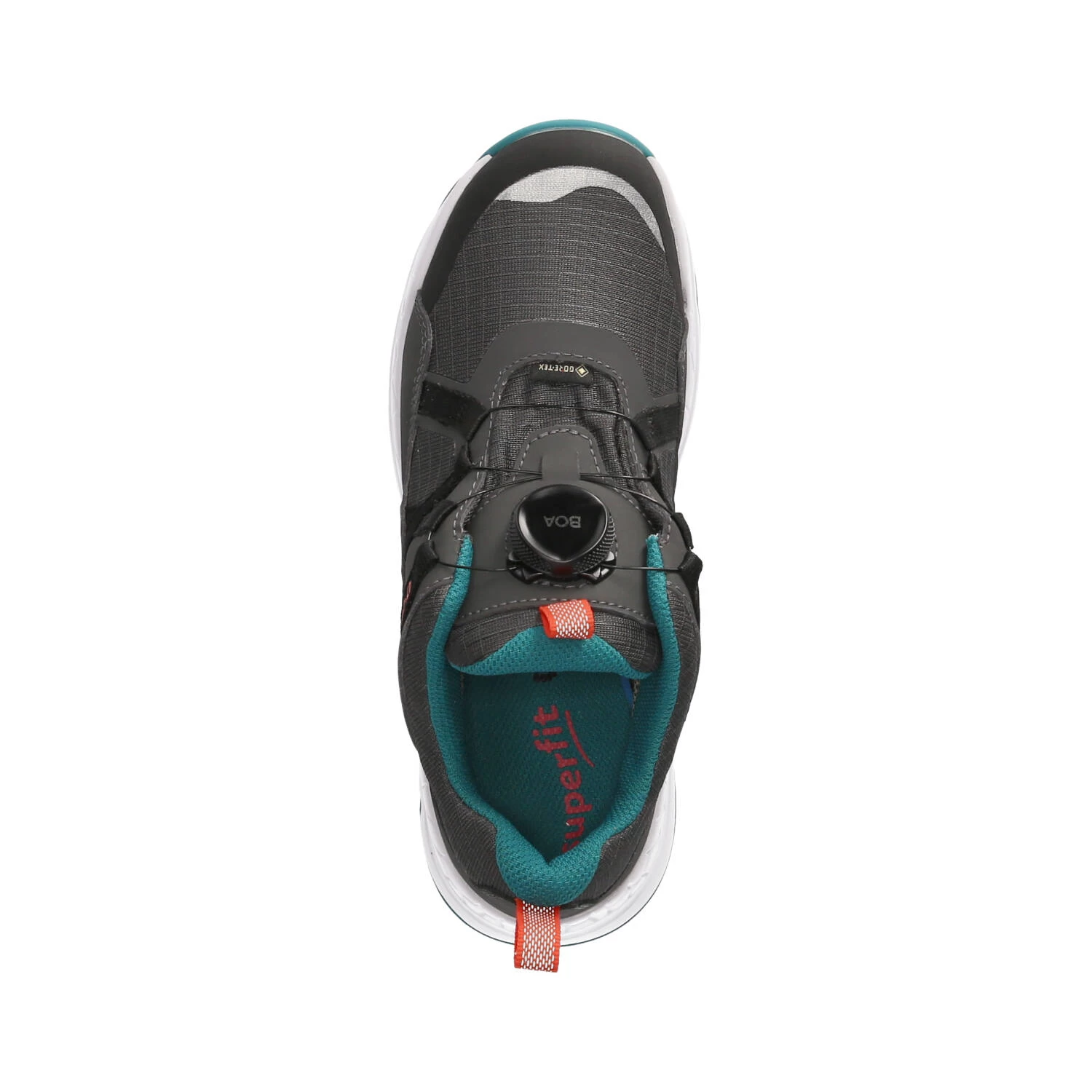 Superfit Kind Outdoorschuhe Grau Synthetik-Textil-Mix – wasserfest, atmungsaktiv (GORE-TEX) – sportliches Design – BOA-Drehverschluss – verstärkter Zehen- Fersenbereich – Anziehlasche – gepolsterter Einstieg – leichtes Textilfutter – gepolstertes WechselfuĂźbett – flexible, rutschhemmende Profilsohle