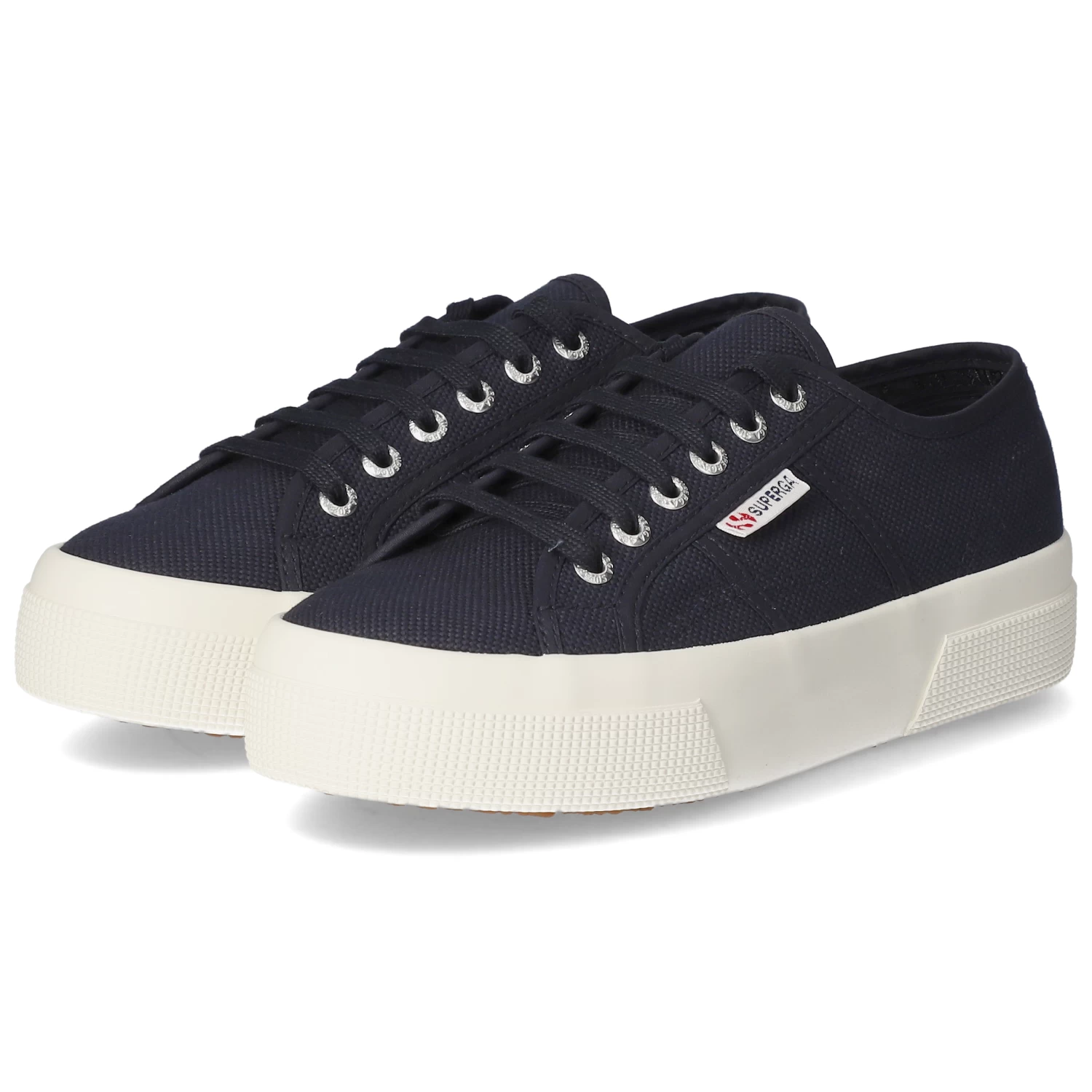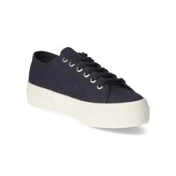 Superga Damen Low Sneaker/ sportliche Halbschuhe/ SchnĂĽrschuhe Blau Canvas – sportliches Design – dezente Markendetails – SchnĂĽrung – verstärkter Zehen- und Fersenbereich – flexible, rutschhemmende Cupsohle