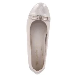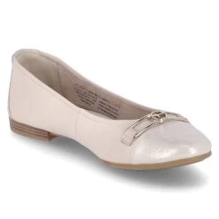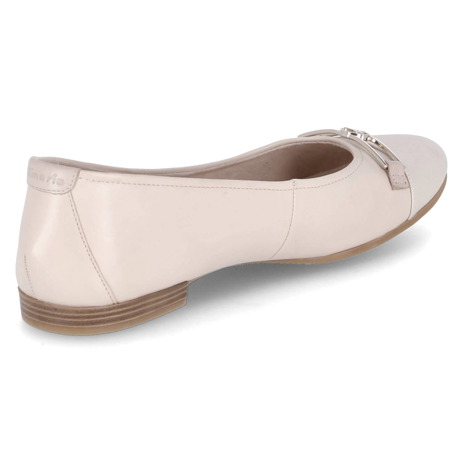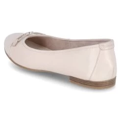 Tamaris Damen Ballerinas Beige Leder-Synthetik-Mix – zierende Markenspanne ĂĽber Spann – verstärkter Fersen- und Zehenbereich – gepolsterte Decksohle – flexible, rutschhemmende Laufsohle