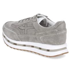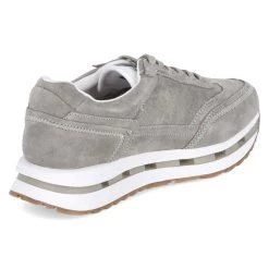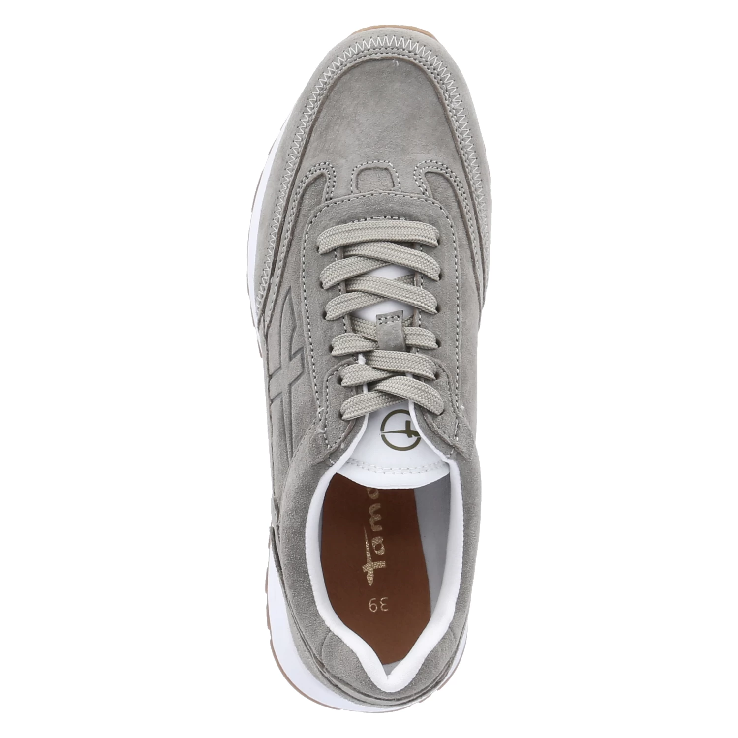 Tamaris Damen Low Sneaker GrĂĽn Leder-Textil-Mix – SchnĂĽrsenkel – gepolsterter Einstieg – verstärkter Zehen- und Fersenbereich – recyceltes Textillining – gepolsterte und herausnehmbare Decksohle – stabile Laufsohle