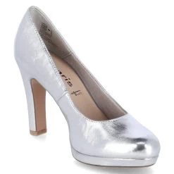 Tamaris Damen High Heel Pumps/ Brautschuhe Silber Synthetik – vegan (PFI-Siegel) – hoher Absatz – verstärkte Ferse – gepolstertes FuĂźbett – kleines Plateau von ca. 1 cm Höhe