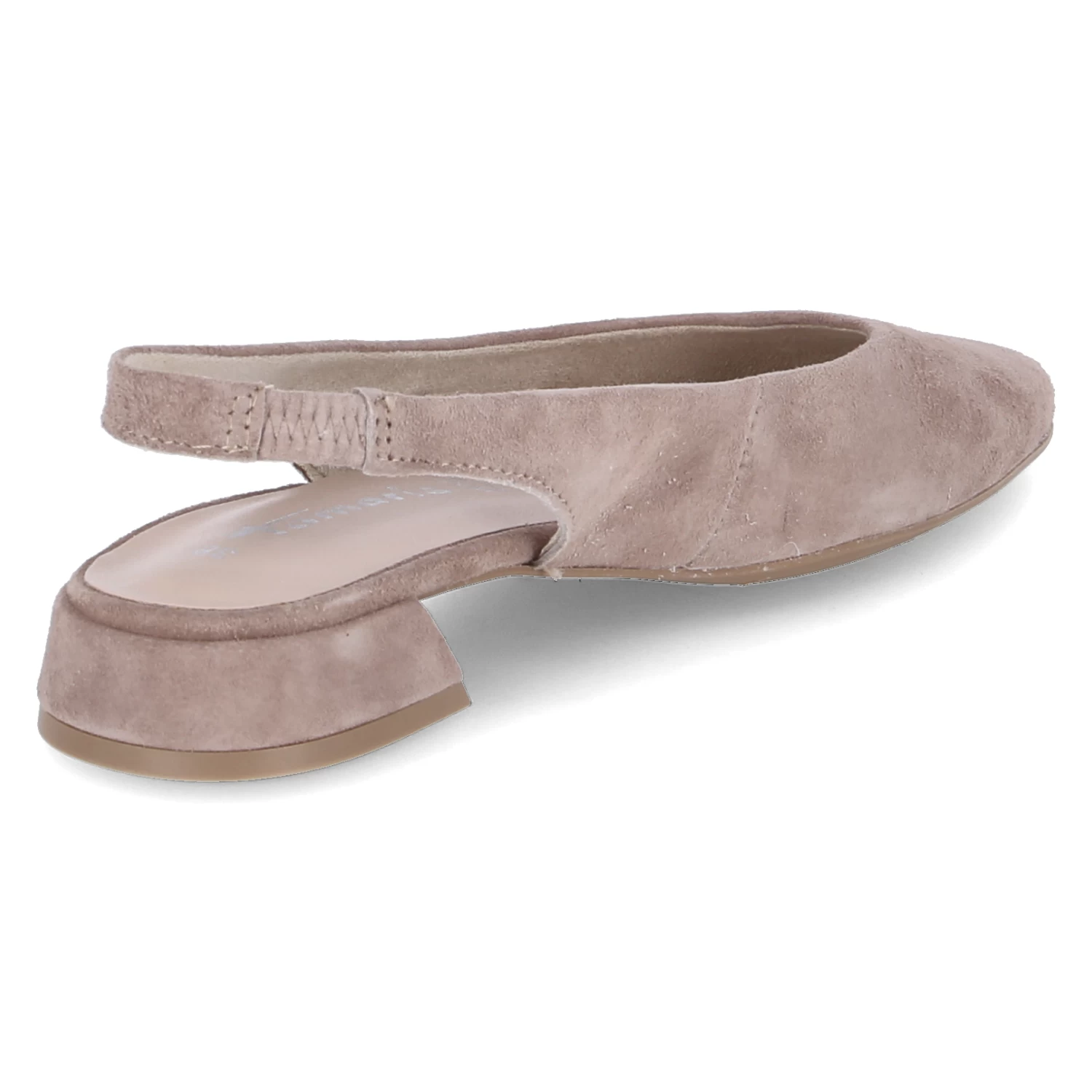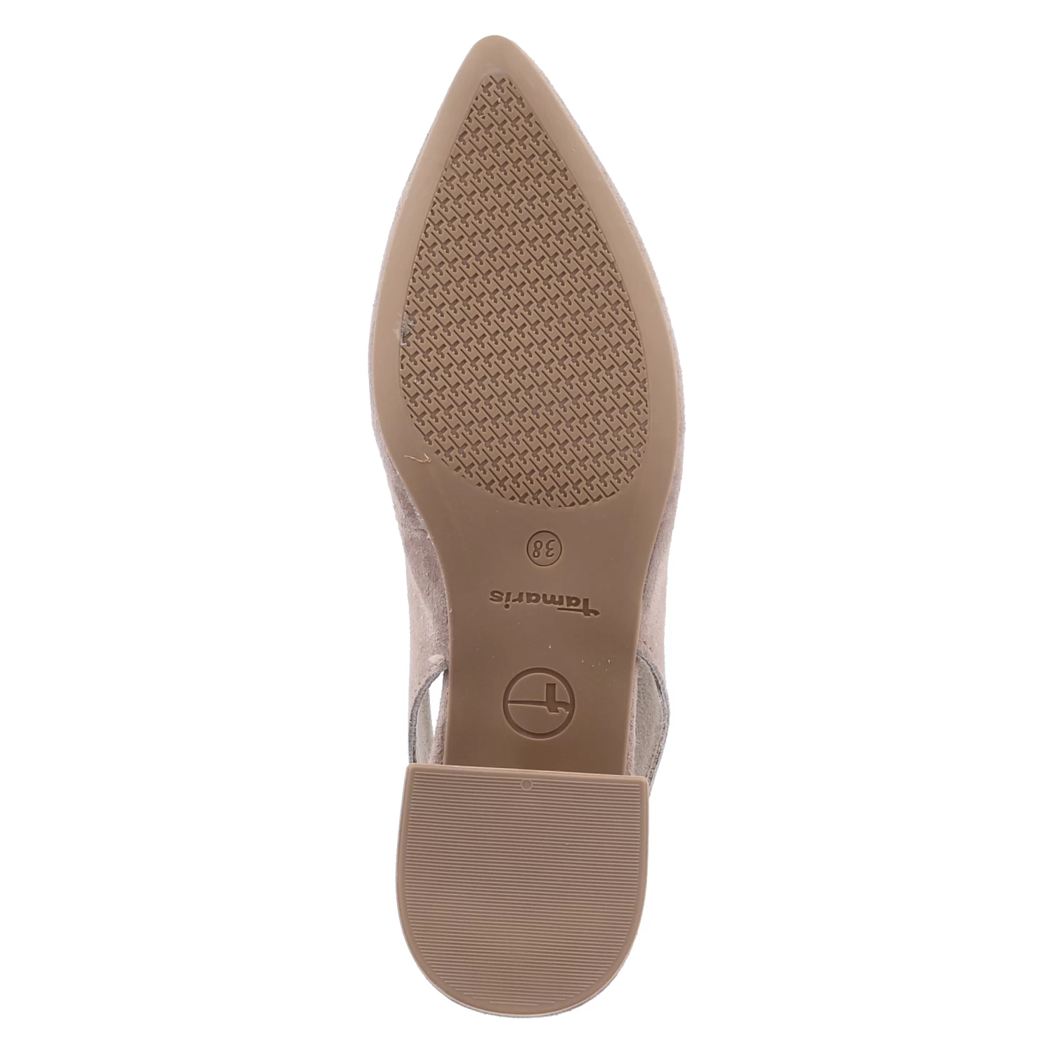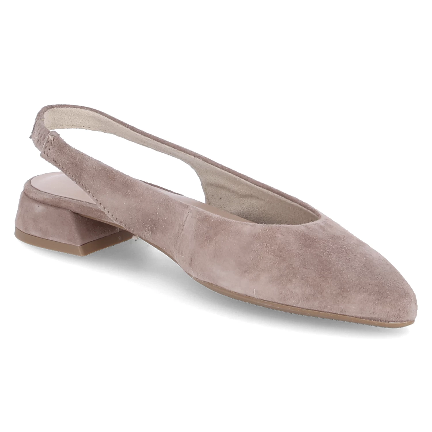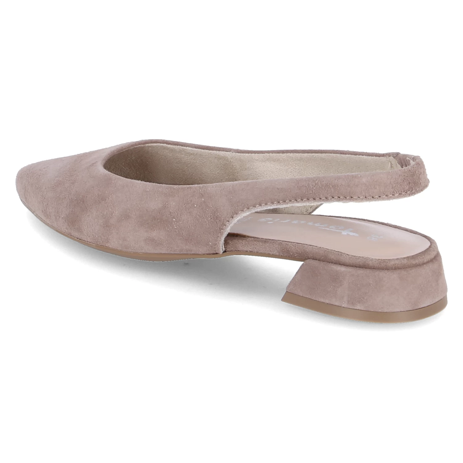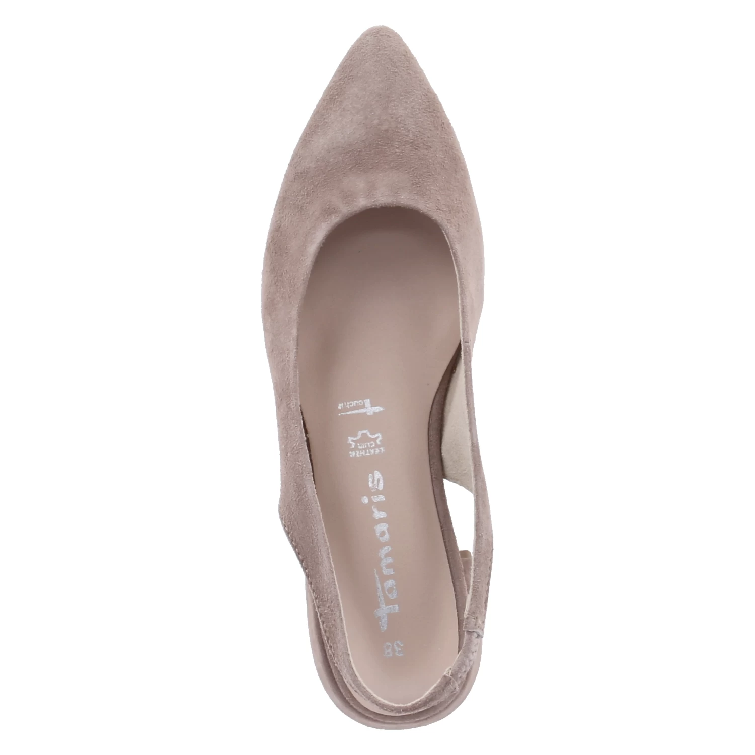 Tamaris Damen Slingpumps Taupe Rauleder – Sling kleinem Elastikeinsatz – kleiner Blockabsatz – gepolstertes FuĂźbett – flexible Antislide Laufsohle