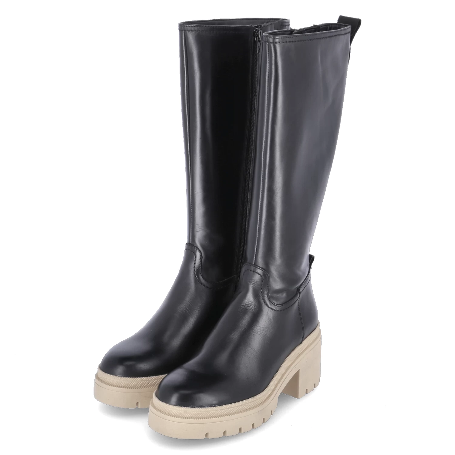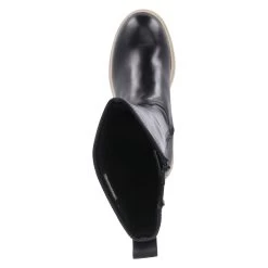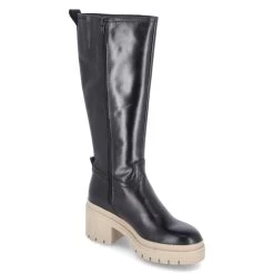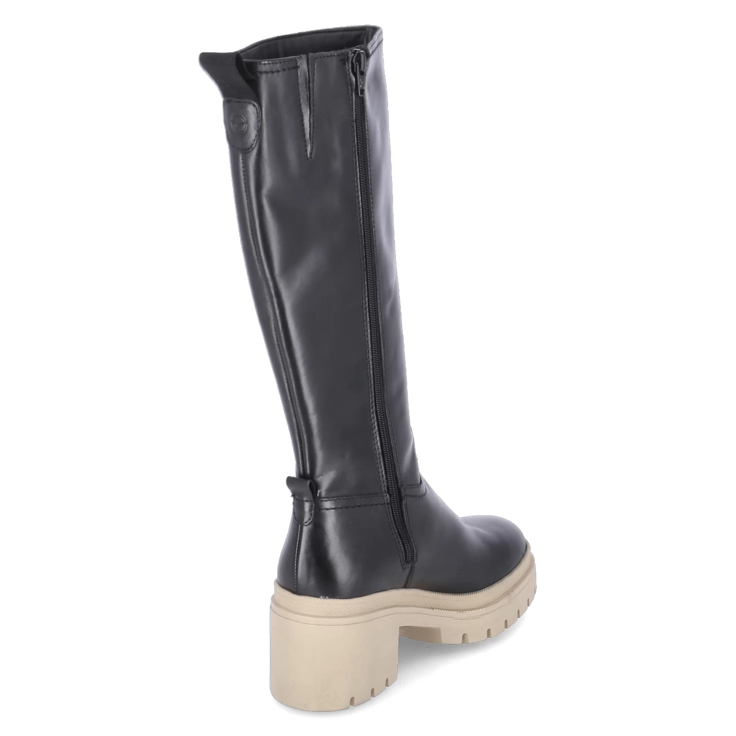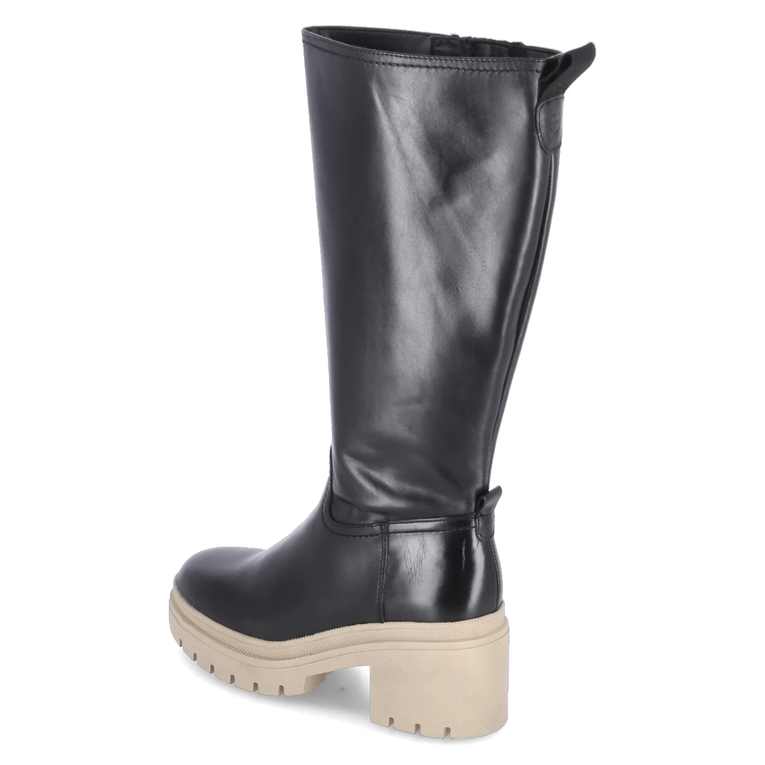 Tamaris Damen Stiefel Schwarz Glattleder – ReiĂźverschluss und kleiner Elastikeinsatz – Anziehlasche – starke, rutschhemmende Profilsohle – gepolstertes FuĂźbett – recyceltes Lining