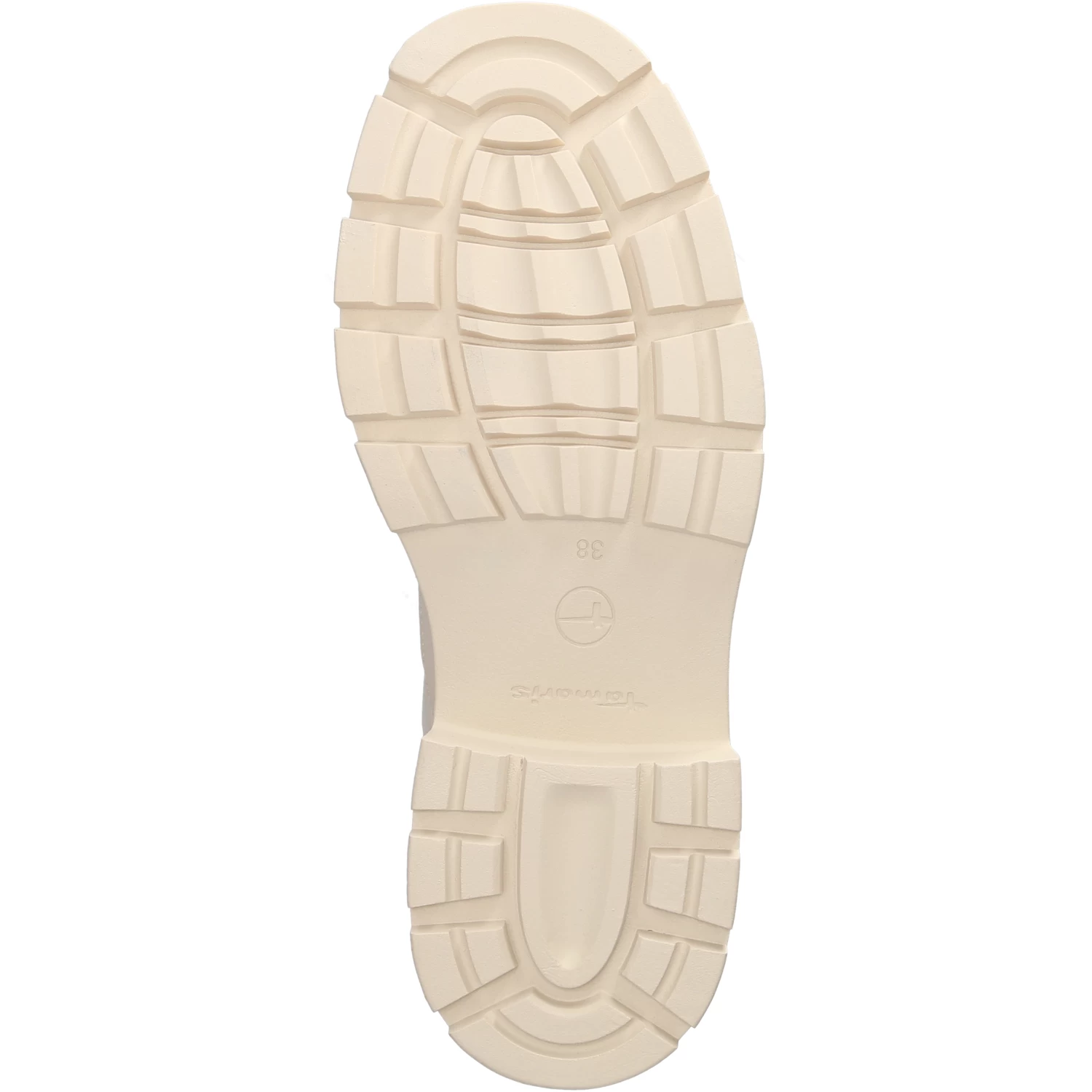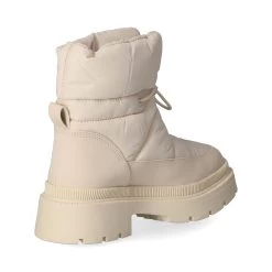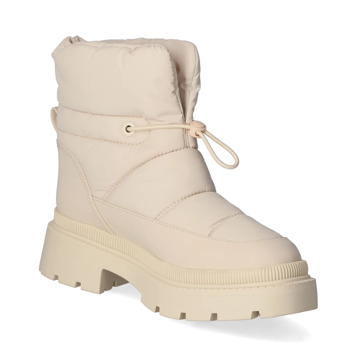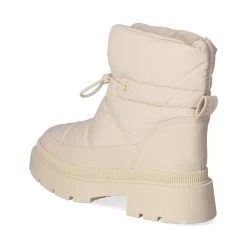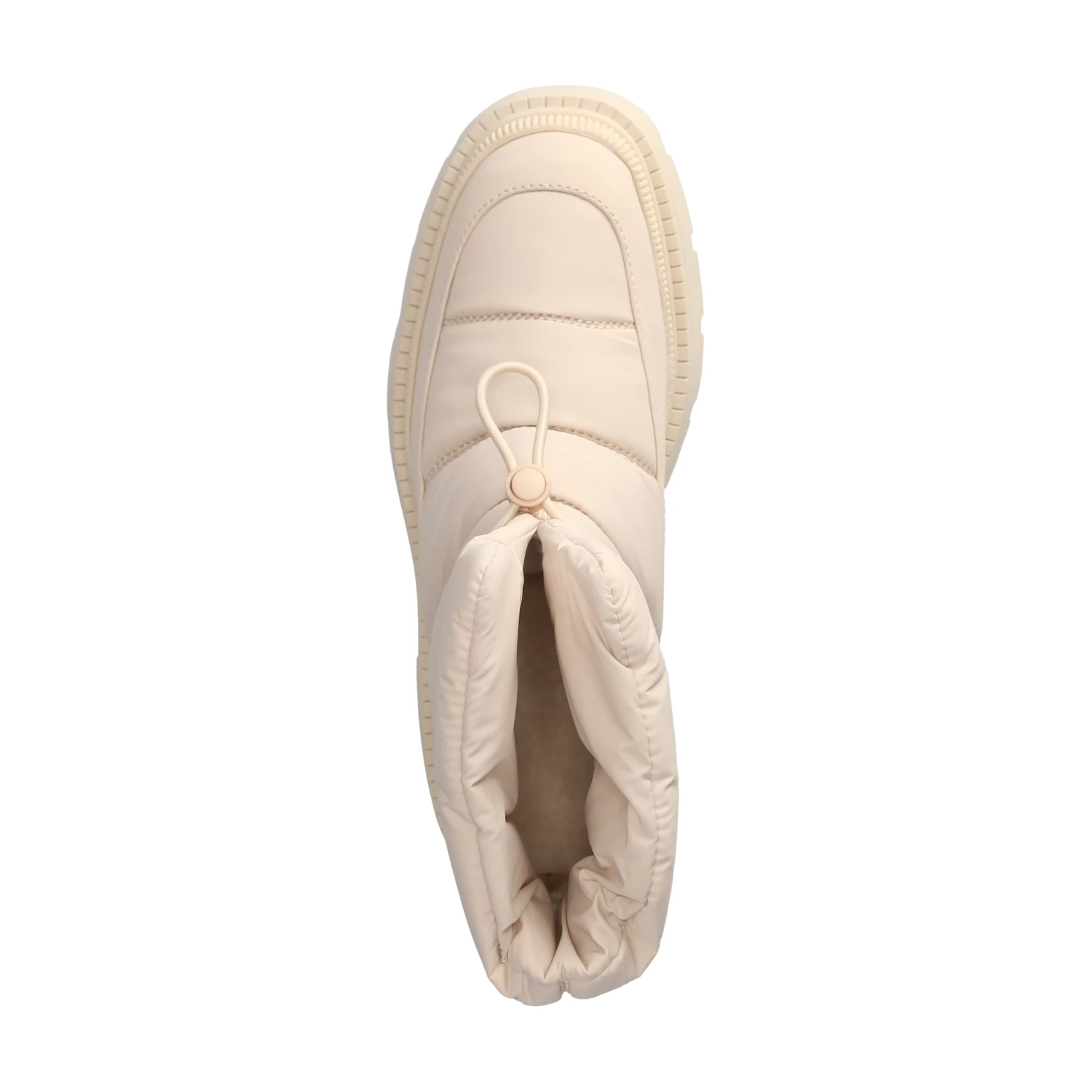 Tamaris Damen Winterstiefeletten/ Stiefeletten Beige Kunstleder-Textil – gesteppter Schaft – Schnellverschluss – warmes Textilfutter – gepolsterte Decksohle – robuste und rutschhemmende Profilsohle – Plateau ca. 3 cm