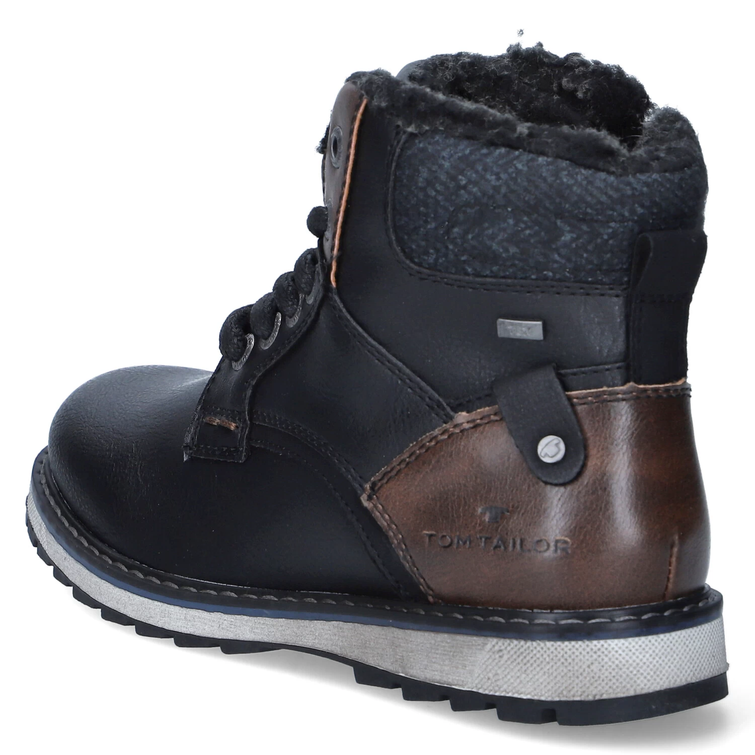 Tom Tailor Jungen SchnĂĽrstiefeletten/ Winterstiefeletten Schwarz Textil-Synthetik-Mix – TexMembran (wasserdicht, atmungsaktiv) – SchnĂĽrsenkel – ReiĂźverschluss – gepolsterter Einstieg – warmes Textilfutter – Zierstreifen und -nähte – verstärkter Zehen- und Fersenbereich – Anziehlasche – gepolsterte Decksohle – flexible, rutschhemmende Laufsohle