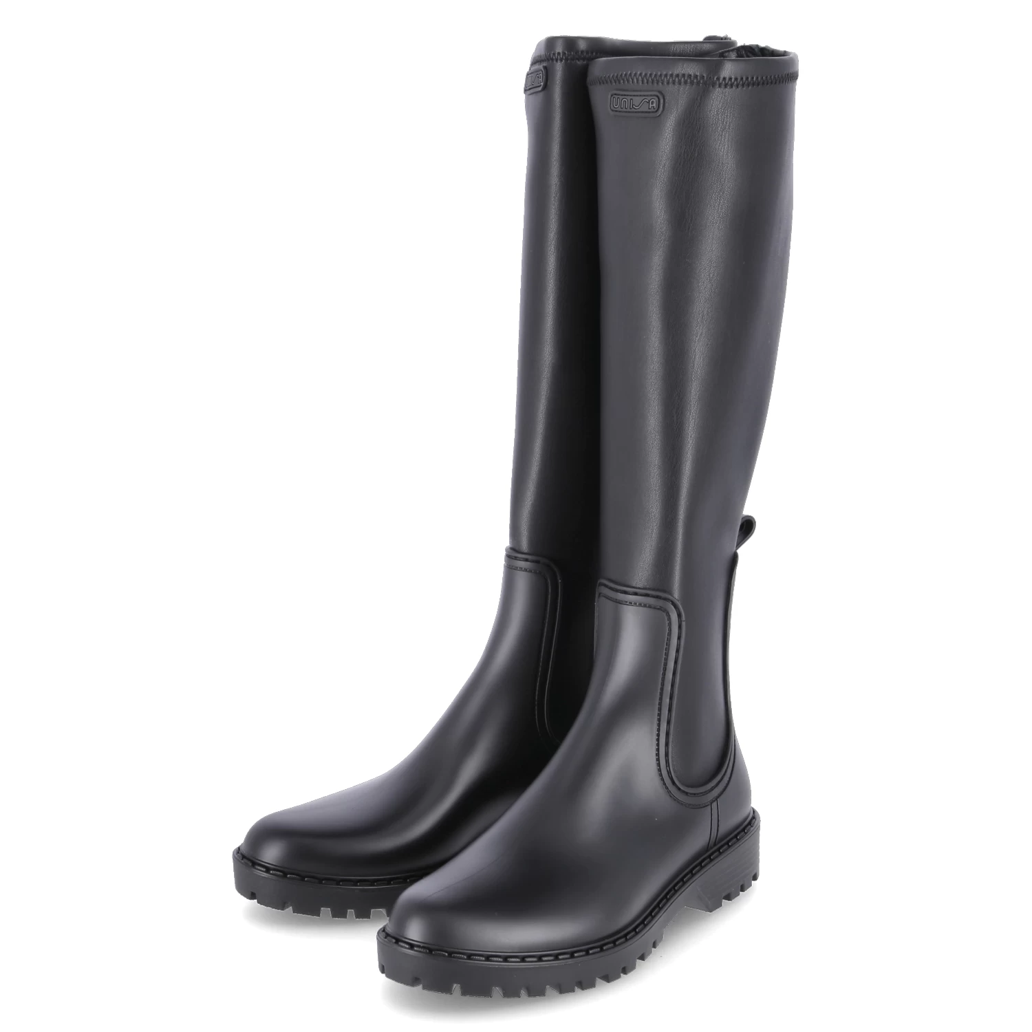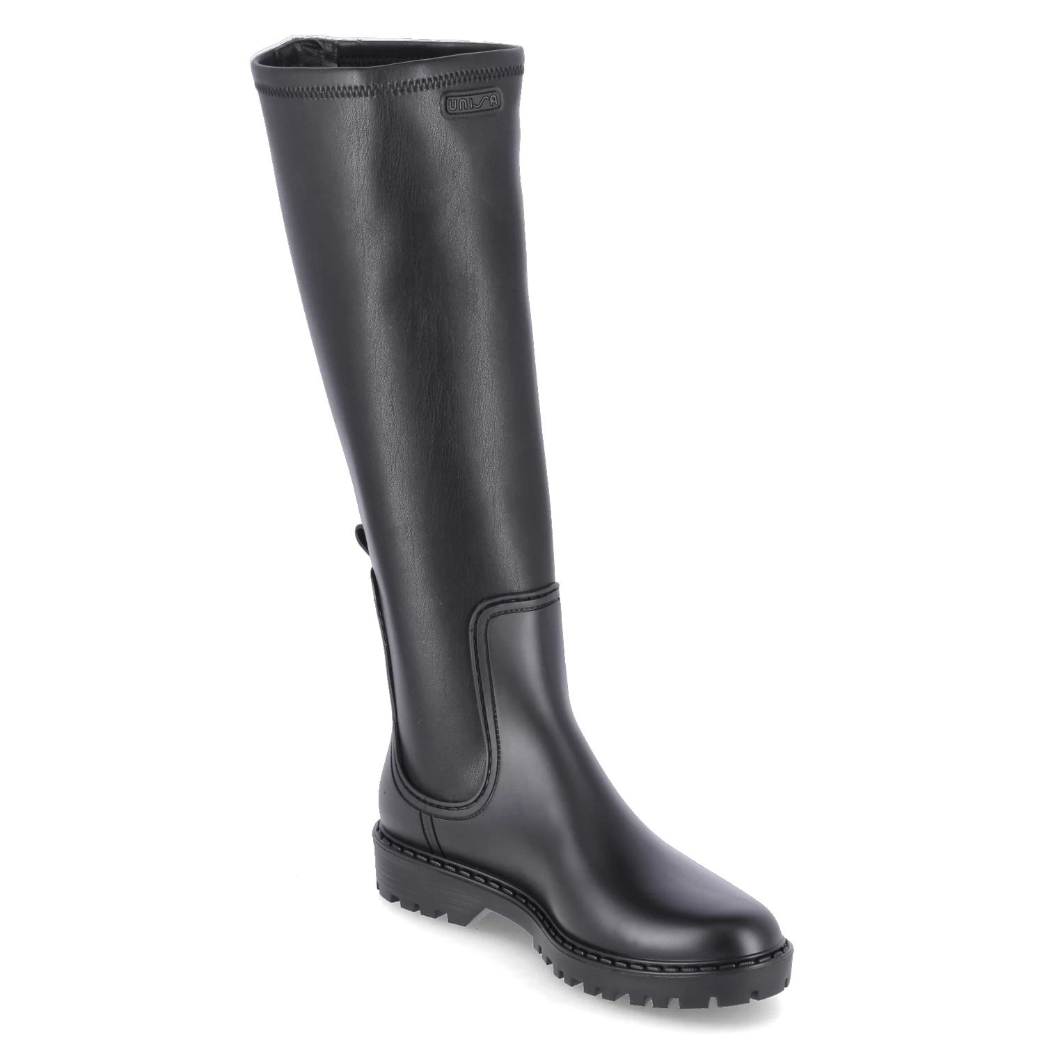 Unisa Damen Gummistiefel ARLO_F22 Schwarz Textil-Synthetik-Mix – weicher, flexibler Schaft mit WadenreiĂźverschluss und Fleecefutter – Anziehlasche – gepolstertes WechselfuĂźbett