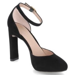 Unisa Damen Spangenpumps/ Pumps PADDY Schwarz samtiges Rauleder – Anklestrap mit Schnalle mit Elastikeinsatz – einseitig schmaler High Heel Blockabsatz von ca. 11 cm Höhe – Lederdecksohle – rutschhemmende, flexible Laufsohle