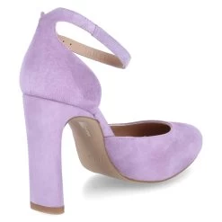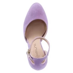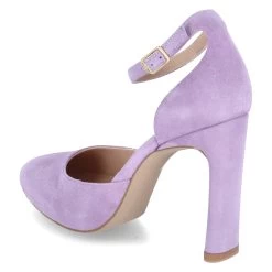 Unisa Damen Spangenpumps/ Pumps PADDY Violett samtiges Rauleder – Anklestrap mit Schnalle mit Elastikeinsatz – einseitig schmaler High Heel Blockabsatz von ca. 11 cm Höhe – Lederdecksohle – rutschhemmende, flexible Laufsohle