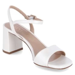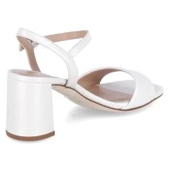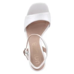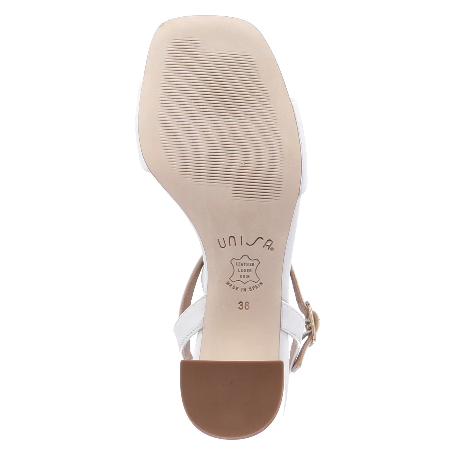 Unisa Damen Brautschuhe/ Sandaletten MORATY WeiĂź Glattleder – seidiger Schimmer – Schnalle mit Elastikeinsatz – stabiler Blockabsatz von ca. 8 cm Höhe – Lederlaufsohle und Lederdecksohle