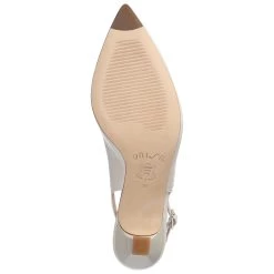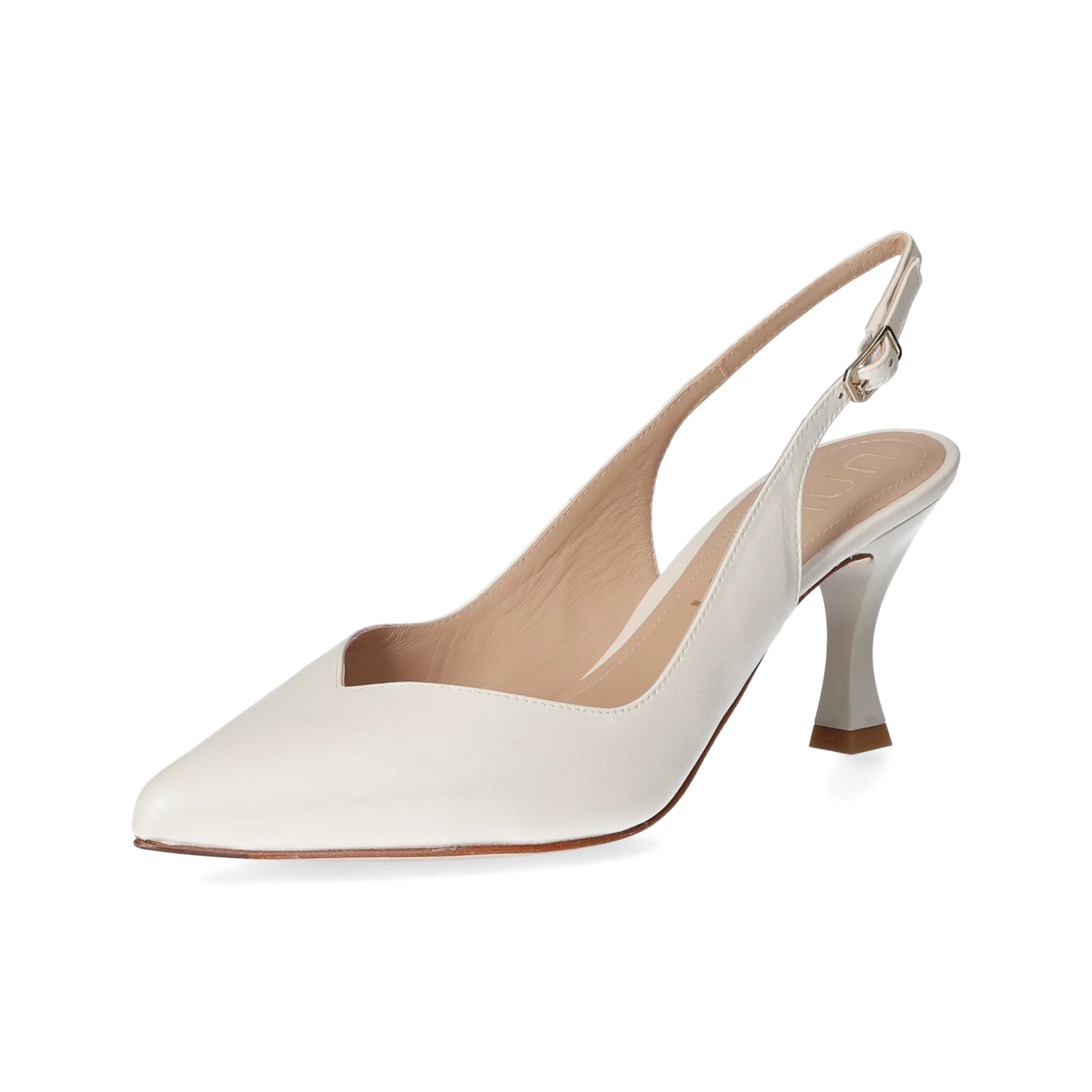 Unisa Damen Pumps/ Slingpumps/ Brautschuhe KARDE WeiĂź Glattleder – dezent schimmernde Oberfläche – eleganter Slingriemen mit Dornverschluss – angenehmes Lederfutter – gepolsterte Decksohle – flexible und rutschhemmende Lederlaufsohle – moderner Sanduhrabsatz