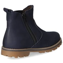 Vado Mädchen Stiefeletten LYRA Blau Rauleder – Ziernähte – Budapester Lochmuster – ReiĂźverschluss – elastischer Einsatz auĂźen am Schaft – gepolsterter Einstieg – verstärkter Zehen- und Fersenbereich – Anziehlasche – WechselfuĂźbett – leichtes Futter fĂĽr kĂĽhlere Tage – flexible, rutschhemmende Laufsohle – VA-TEX (wasserfest, atmungsaktiv)