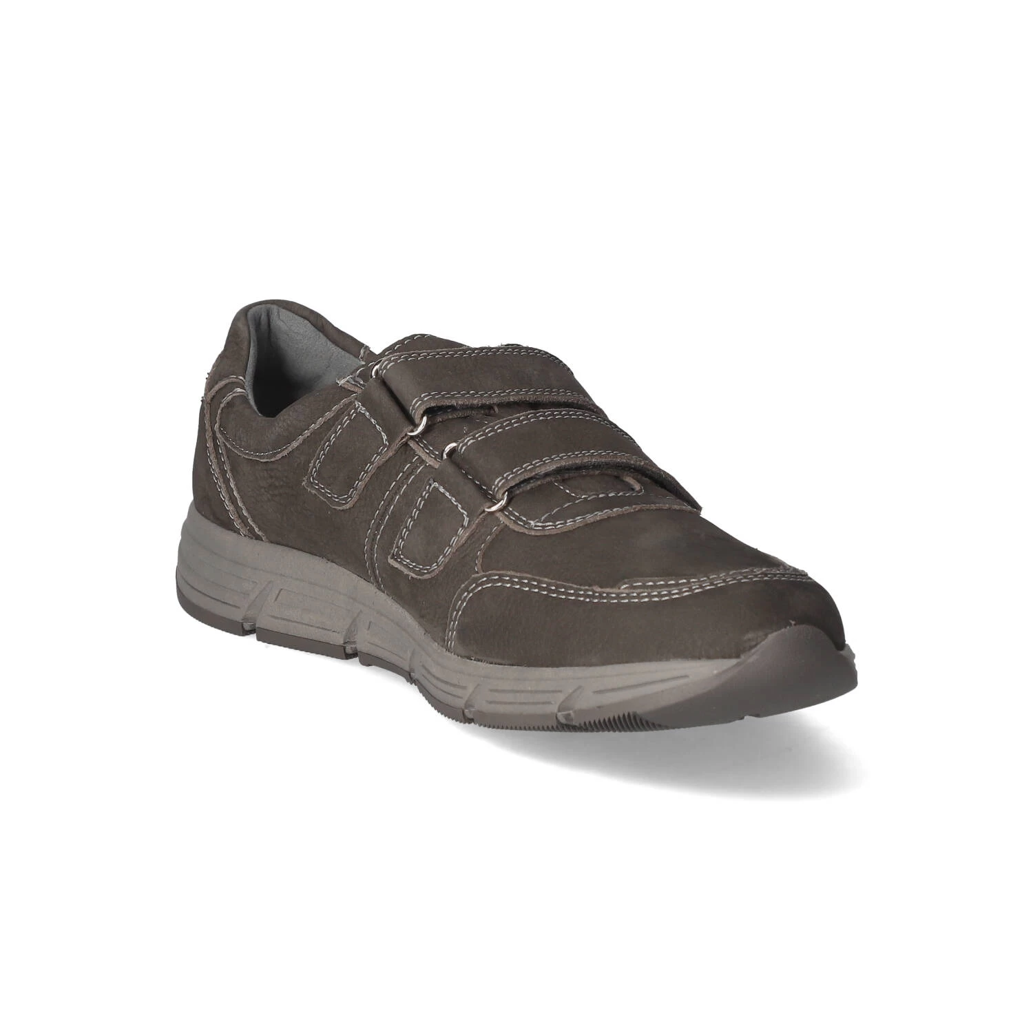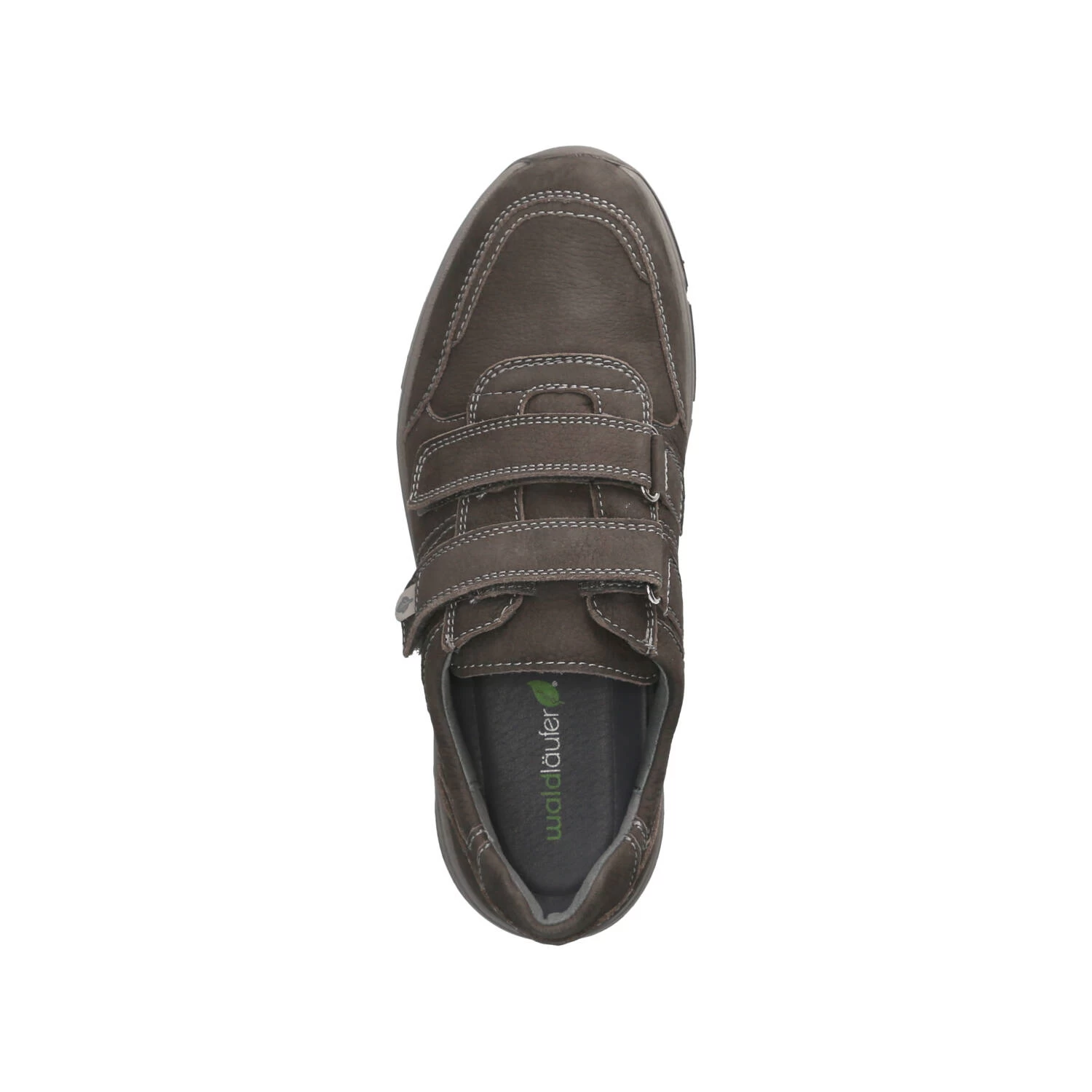 Waldläufer Herren Halbschuhe/ Klettschuhe Grau Leder – modische Ziernähte – Klettverschluss – verstärkter Zehen- und Fersenbereich – dezent gepolsterter Einstieg – leichtes Leder-Textilfutter – herausnehmbare, gepolsterte Lederdecksohle – flexible, rutschhemmende Profilsohle