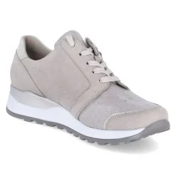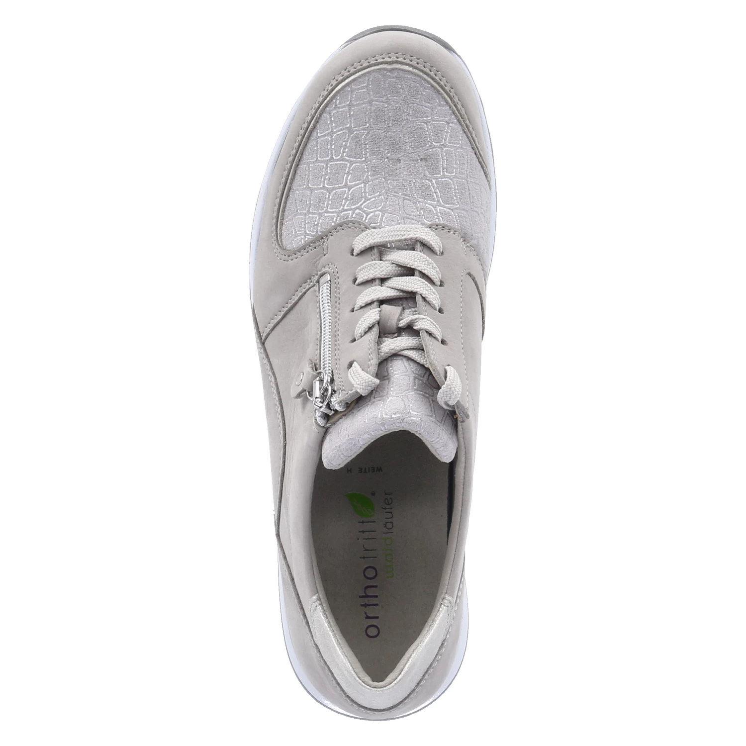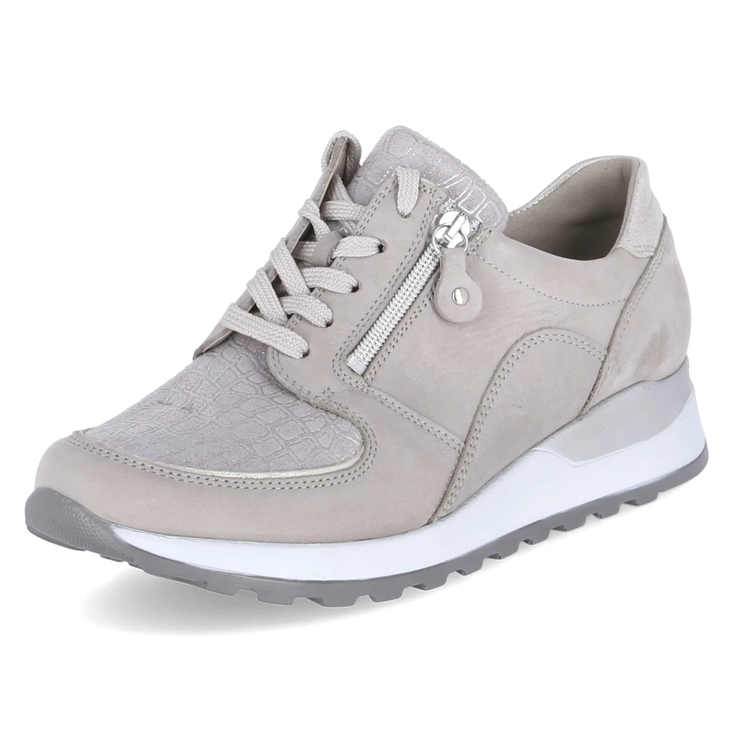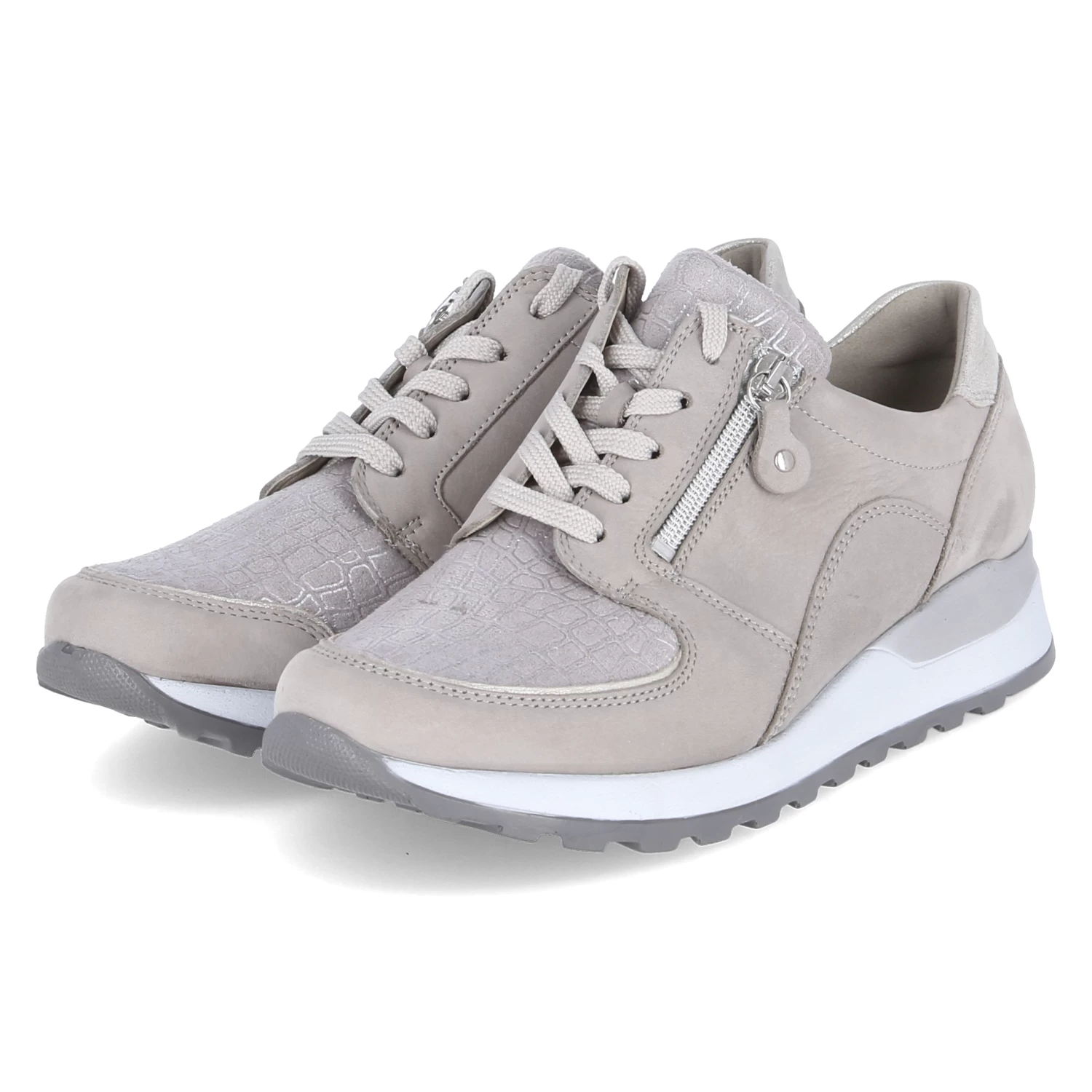 Waldläufer Damen Schnürschuhe/ Low Sneaker HIROKO Grau Leder-Textil-Mix – Schnürung und Reißverschluss – zum Teil in Reptiloptik – verstärkter Zehen- und Fersenbereich – gepolstertes Wechselfußbett – flexible, rutschhemmende Laufsohle