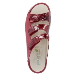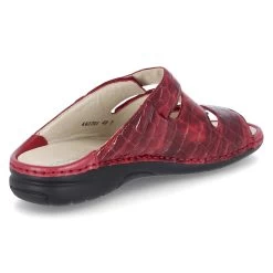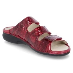 Waldläufer Damen Pantoletten GUNNA Rot Glattleder – Teile in glänzender Optik – Animalprägung (Reptil) – drei Klettverschlussriemen – angenehmes Lederfutter – gepolsterte Wechseldecksohle mit Klettverschluss – flexible Laufsohle