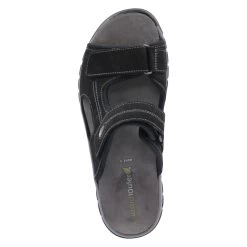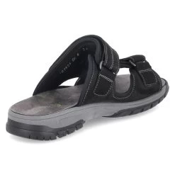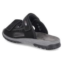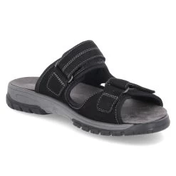 Waldläufer Herren Pantoletten HARALD Schwarz Rauleder – zwei breite Riemen mit Klettverschluss – modische Ziernähte – leicht gepolstertes Tieffußbett – herausnehmbare Lederdecksohle – flexible, rutschhemmende Sohle mit leichtem Profil