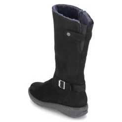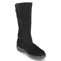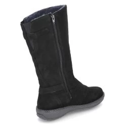 Waldläufer Damen Winterstiefel/ Stiefel HOJA Schwarz Rauleder – natürliches Design – Reißverschluss – Knöchelriemen mit Schnalle – Elastikeinsatz mit Klettriemen oberhalb des Schafts (Vario) – warmes Lammfellfutter – gepolstertes Wechselfußbett – flexible, rutschhemmende Profilsohle