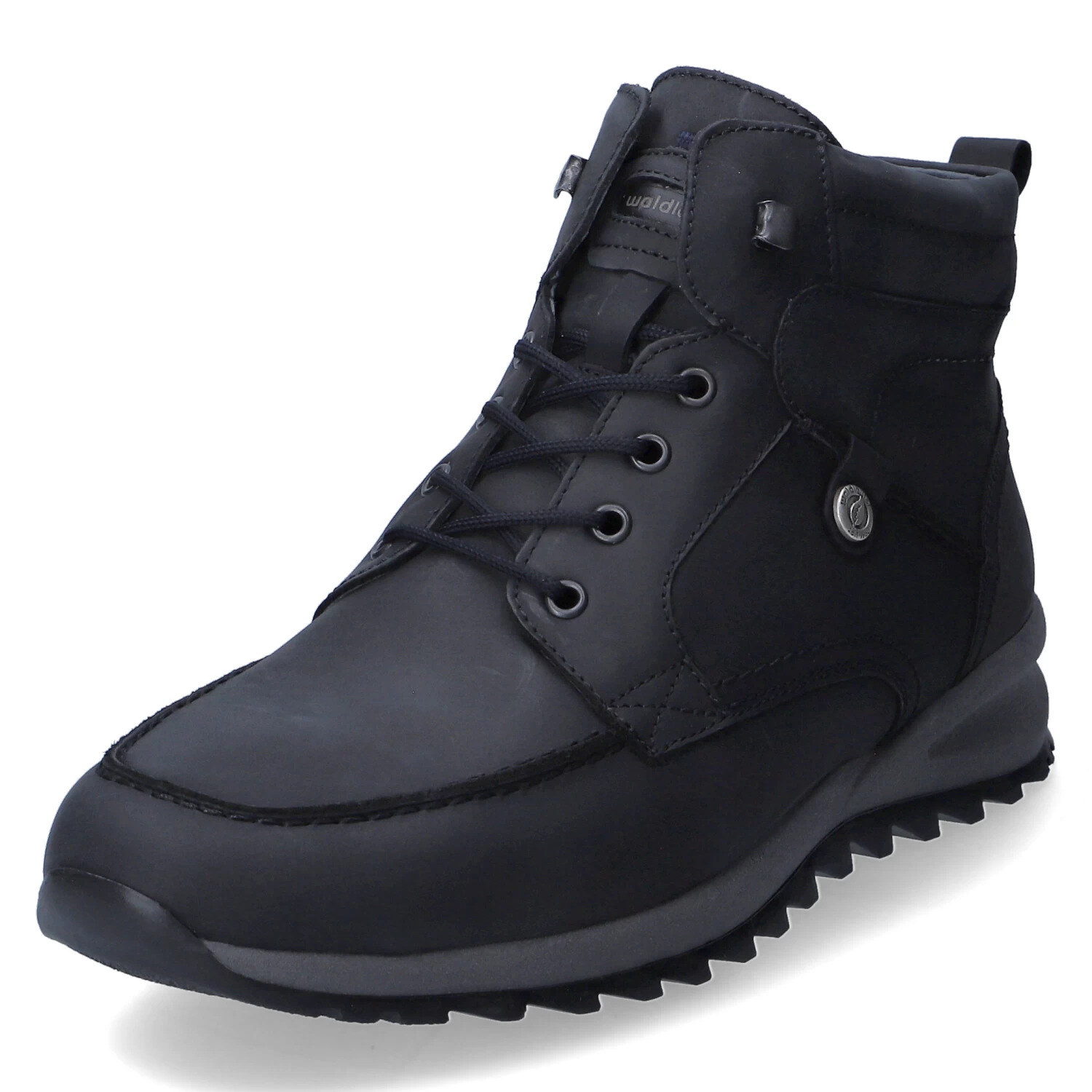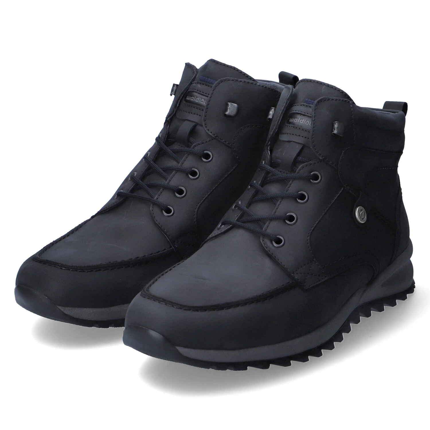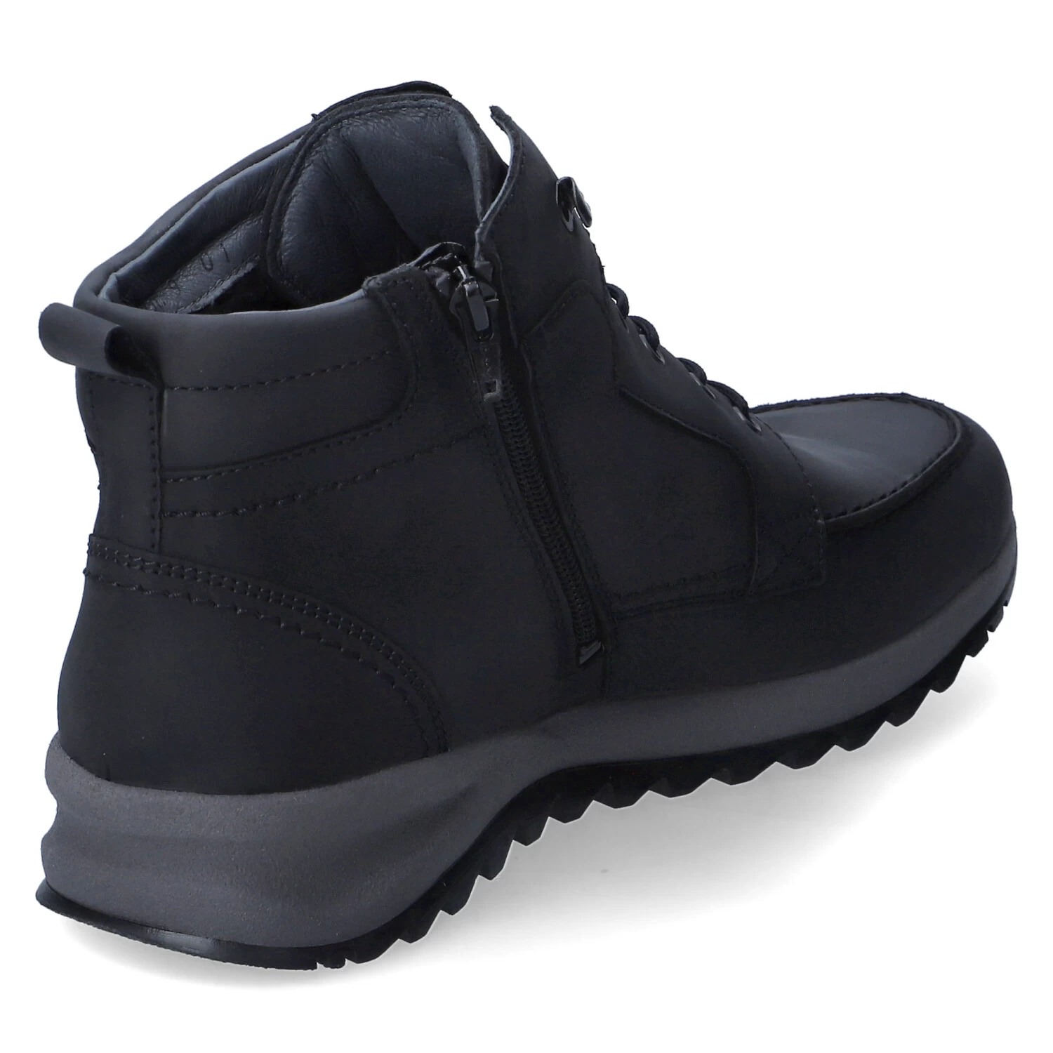 Waldläufer Herren Winterboots/ Schnürboots HELLE Schwarz Rauleder – Schnürsenkel – Reißverschluss – Anziehlasche – verstärkter Zehen- und Fersenbereich – warmes Textilfutter – gepolsterte, herausnehmbare Decksohle – flexible, rutschhemmende Profilsohle