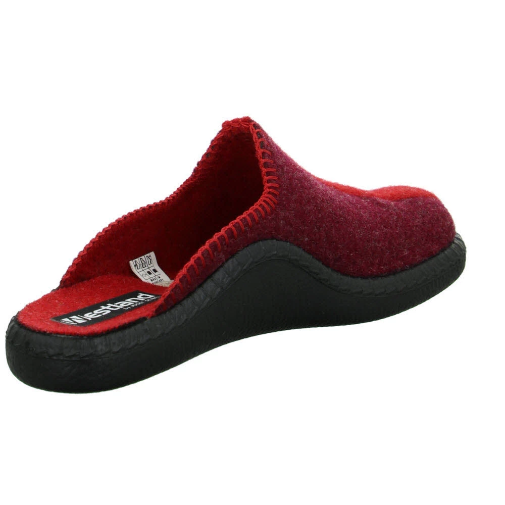 Westland Damen Filz-Hausschuhe Monaco 62 Rot mit Zierstreifen, Ziernaht und rutschfester Laufsohle