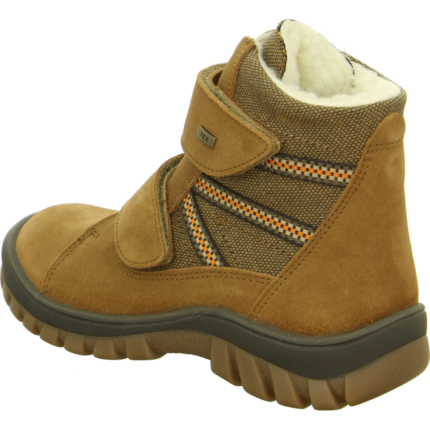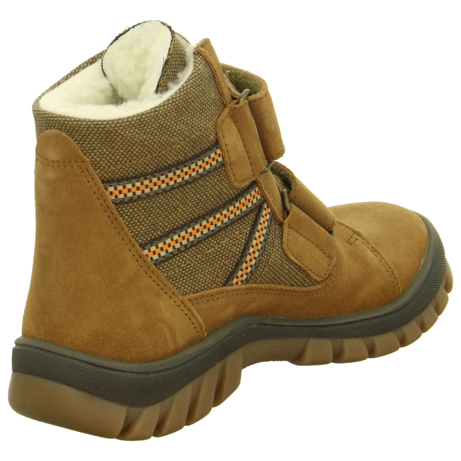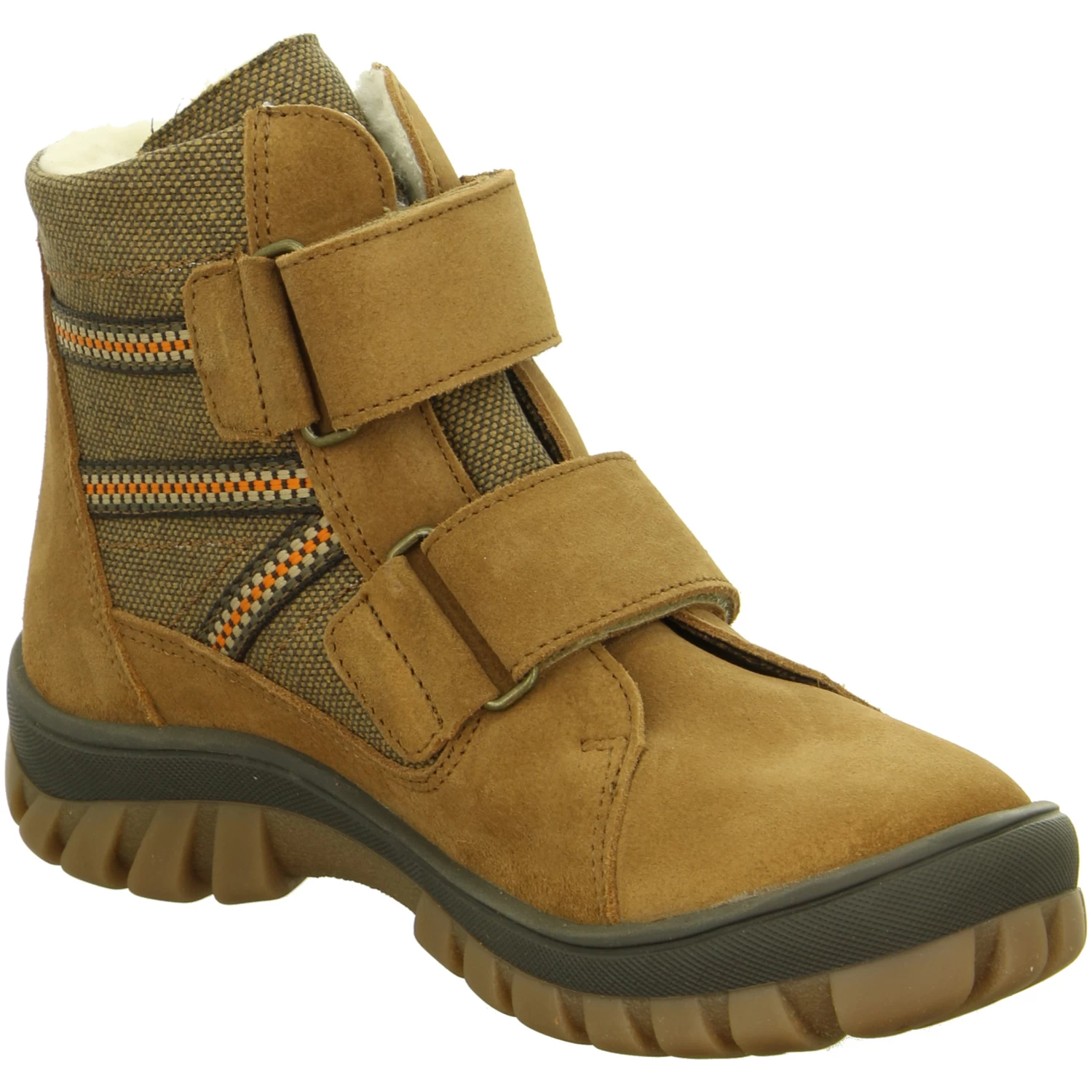 Däumling Kinder Stiefeletten/ Winter Boots Braun Leder-Textil-Mix – zwei KlettverschlĂĽsse – Ziernähte – gepolsterter Einstieg – leicht gepolstertes WechselfuĂźbett – verstärkter Fersenbereich – flexible, rutschhemmende Laufsohle – Warmfutter – TEX
