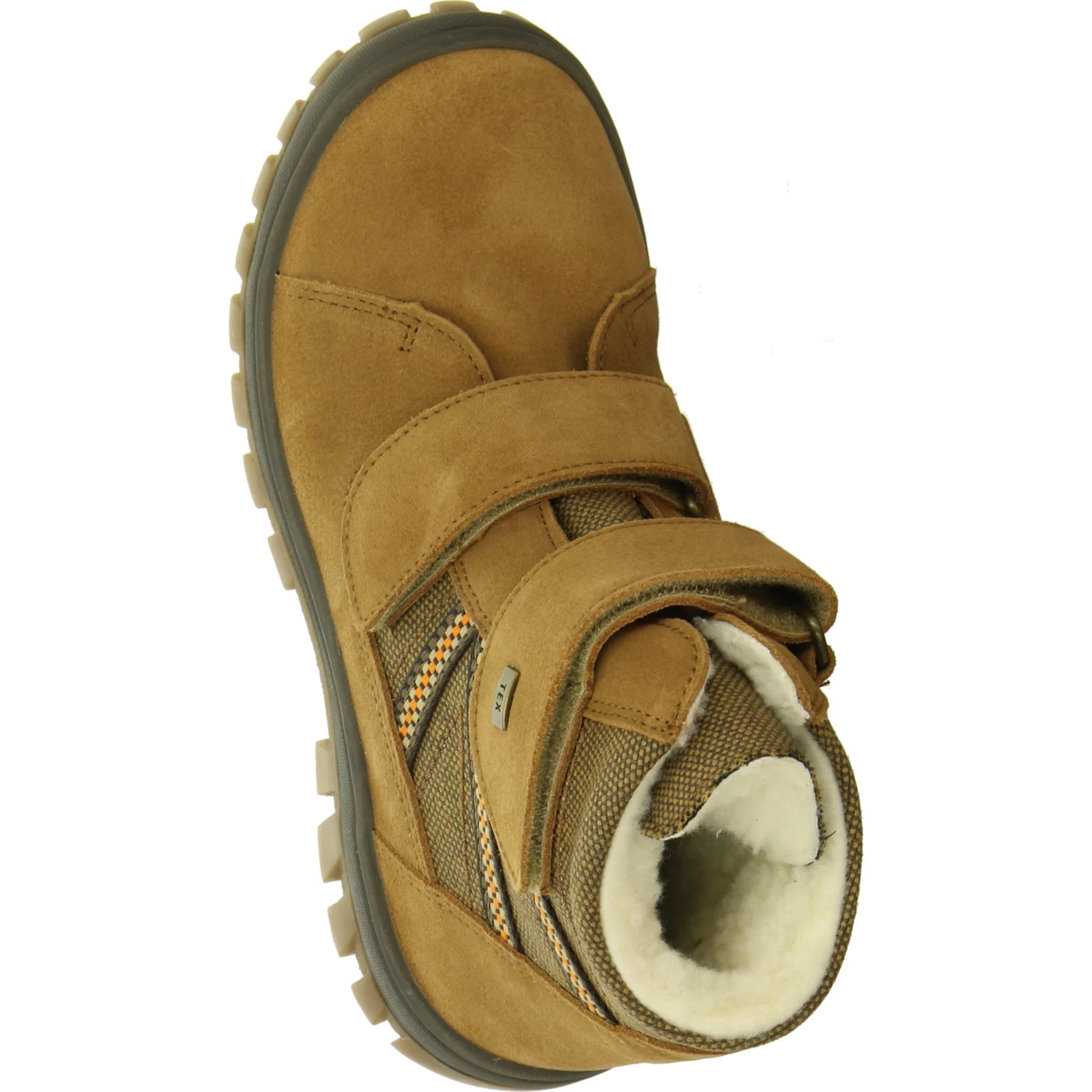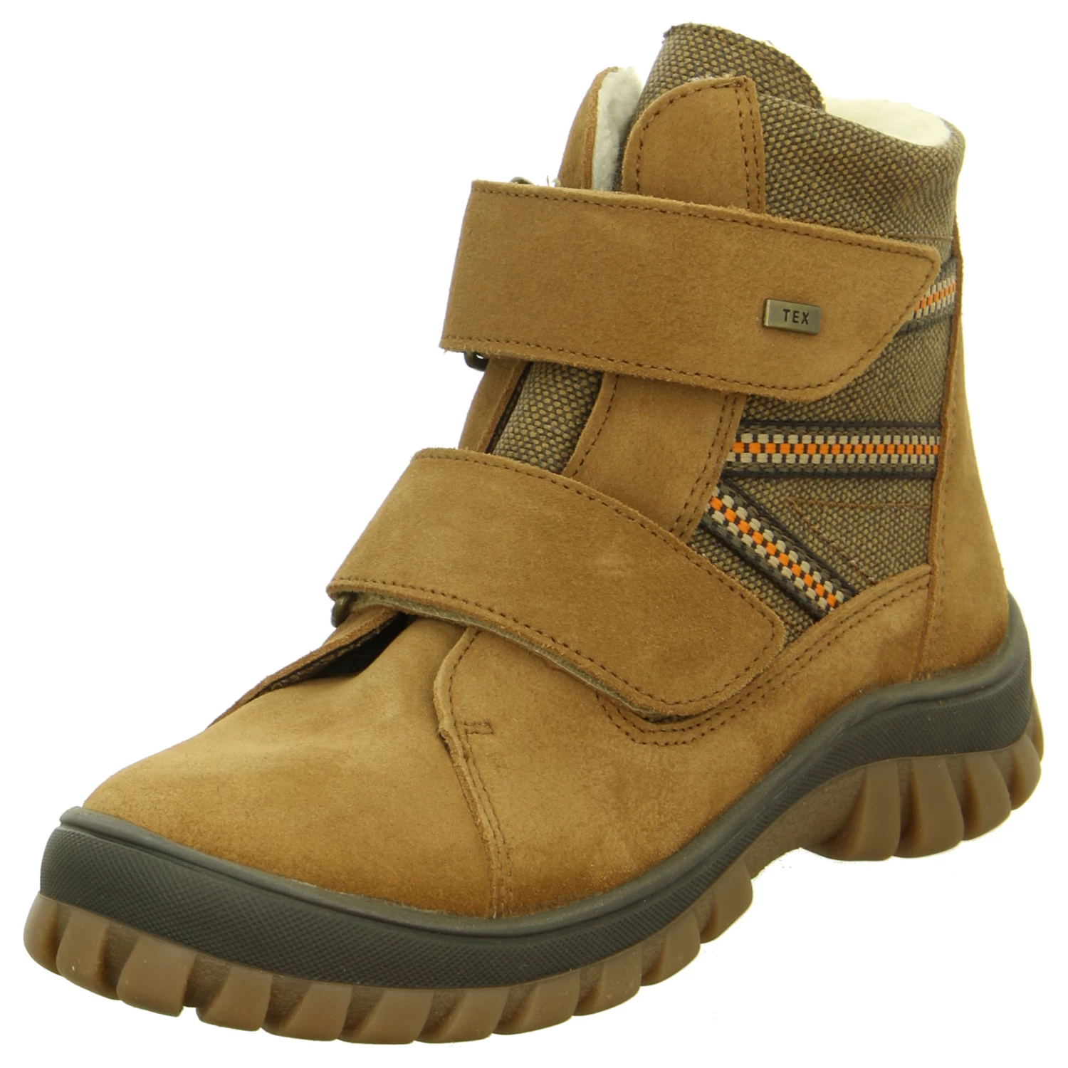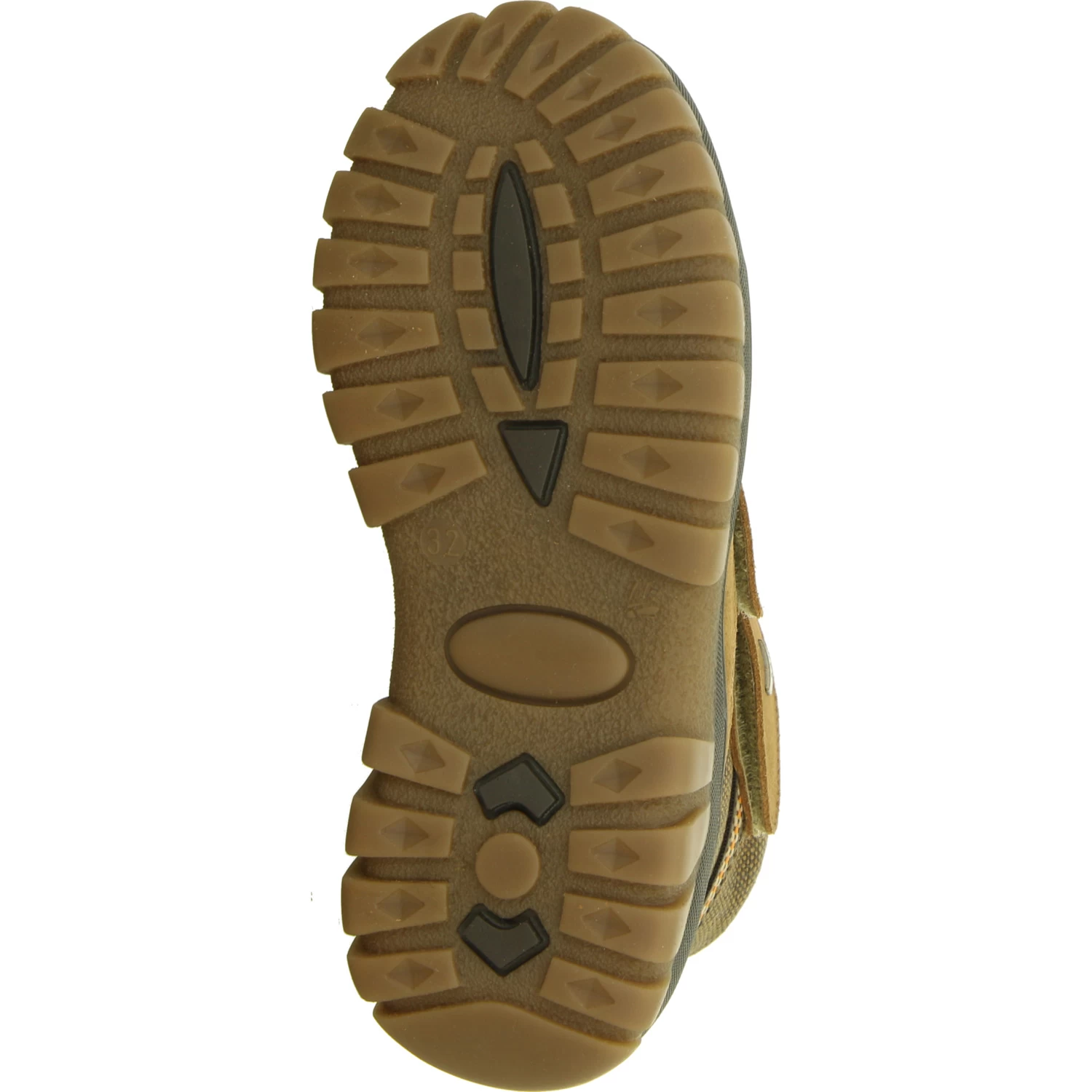 Däumling Kinder Stiefeletten/ Winter Boots Braun Leder-Textil-Mix – zwei KlettverschlĂĽsse – Ziernähte – gepolsterter Einstieg – leicht gepolstertes WechselfuĂźbett – verstärkter Fersenbereich – flexible, rutschhemmende Laufsohle – Warmfutter – TEX