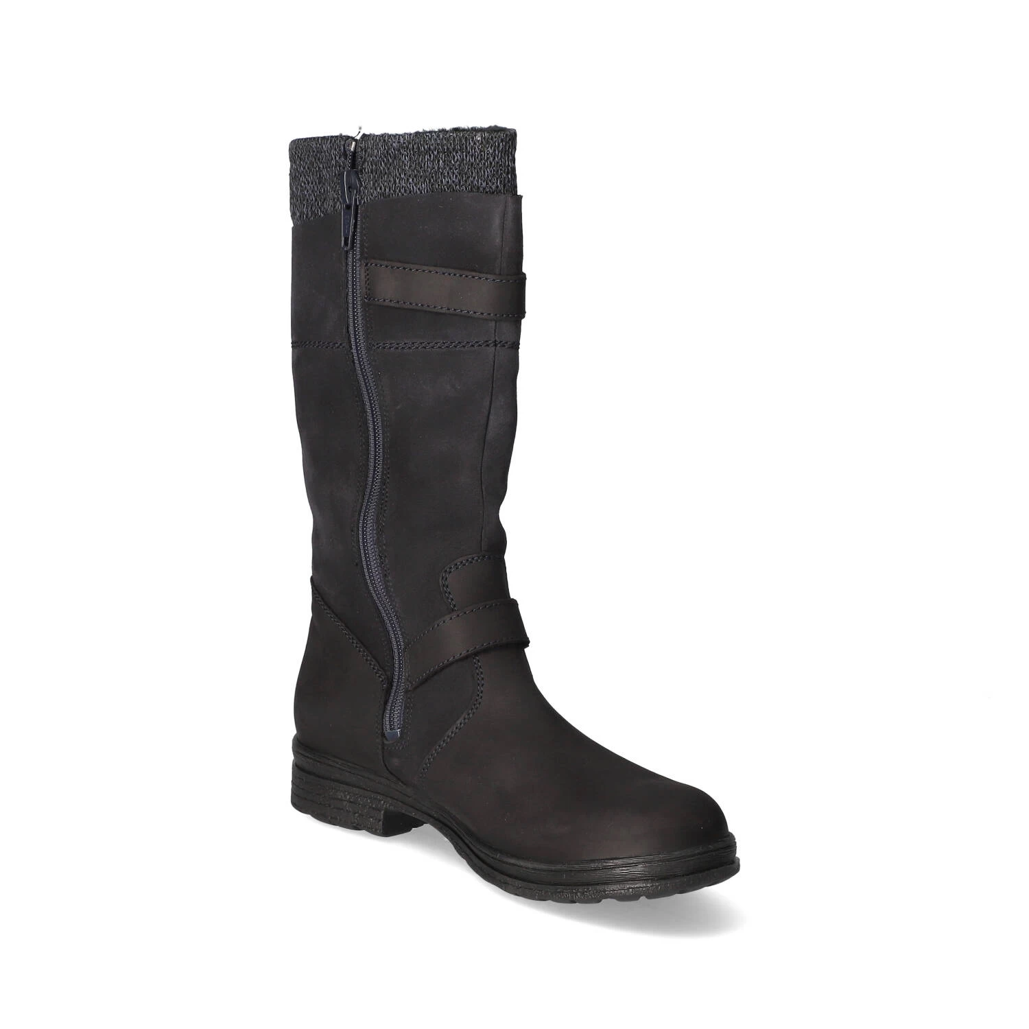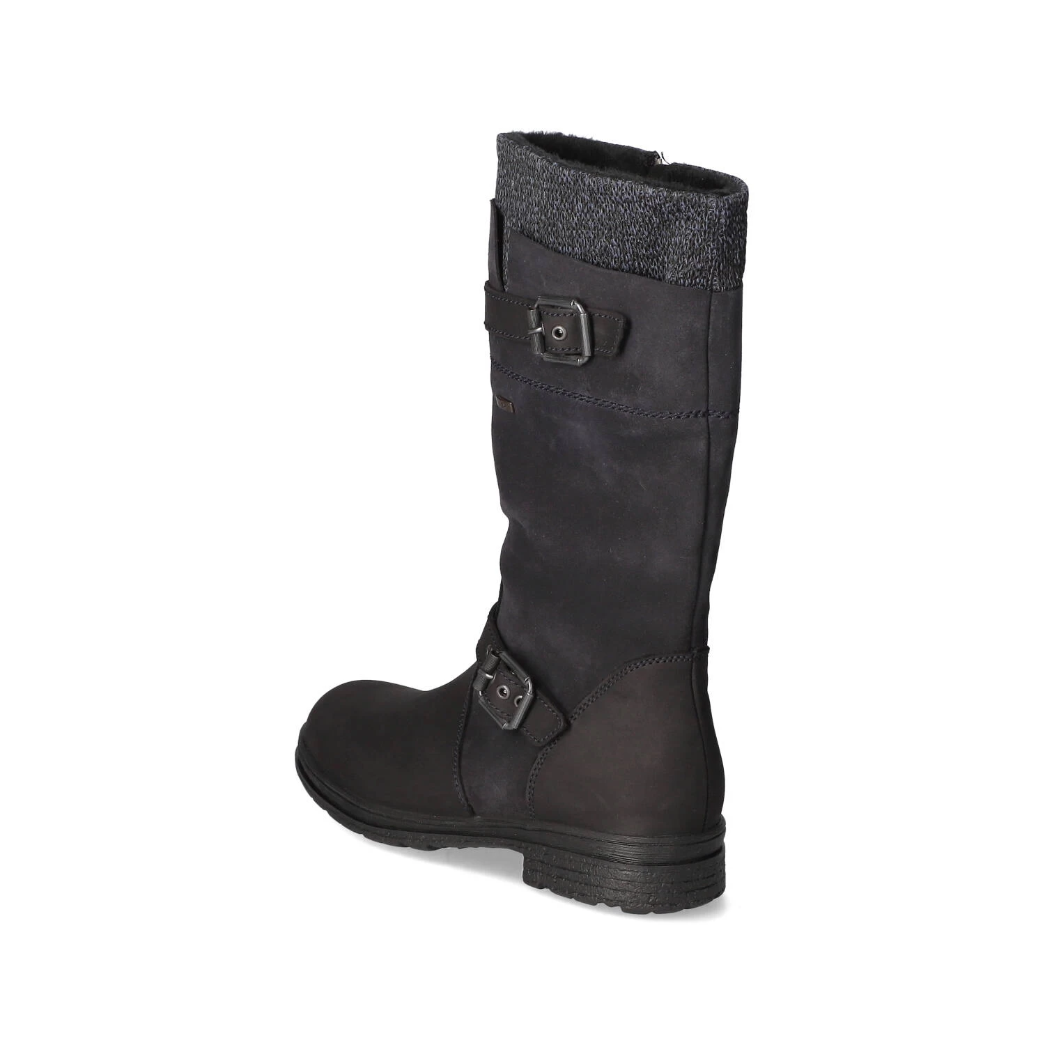 Däumling Mädchen Winterstiefel Dunkelblau Rauleder – wasserfest, atmungsaktiv – Zierschnallen – ReiĂźverschluss – verstärkte Ferse – Einstieg mit Strick – weiches, warmes Fleecefutter – flexible, rutschhemmende Laufsohle